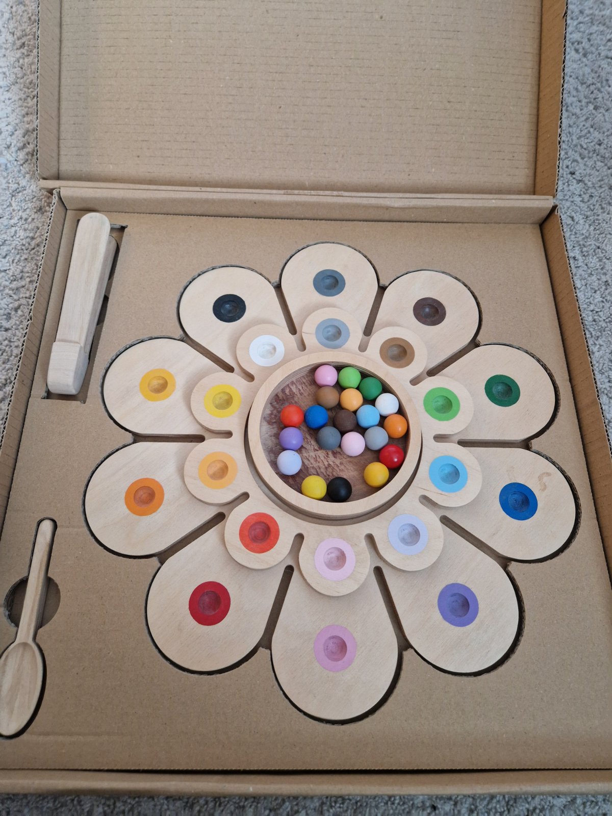 Hračka je vynikajúca na učenie farieb a tréning jemnej motoriky.