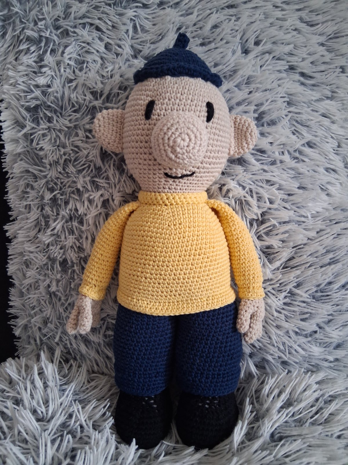 Háčkovaná postavička Pat z rozprávky A je to. Výška 35cm, vyplnená dutým vláknom. Čoskoro pribudne aj Mat
