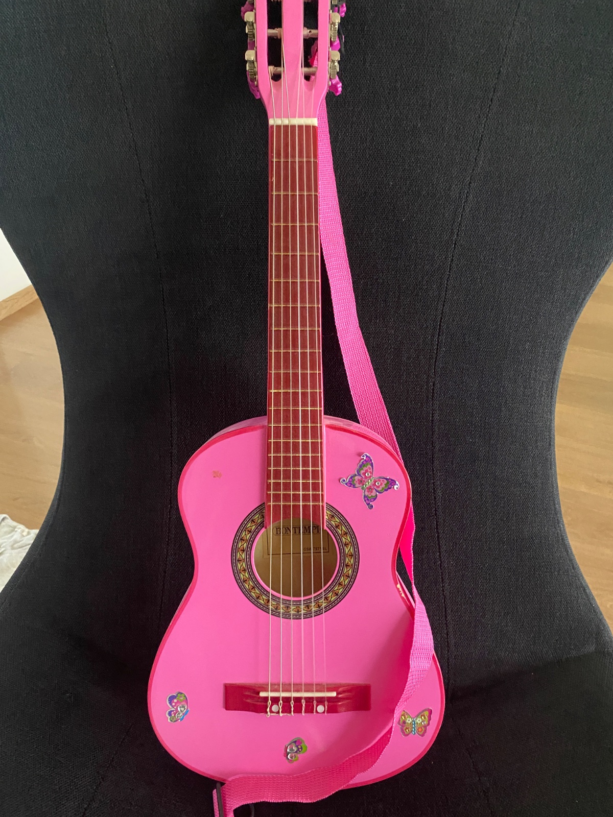 Zachovalá, funkčná. Mechanický systém ladenia šiestich strún je rovnaký ako u skutočnej gitary.77 cm