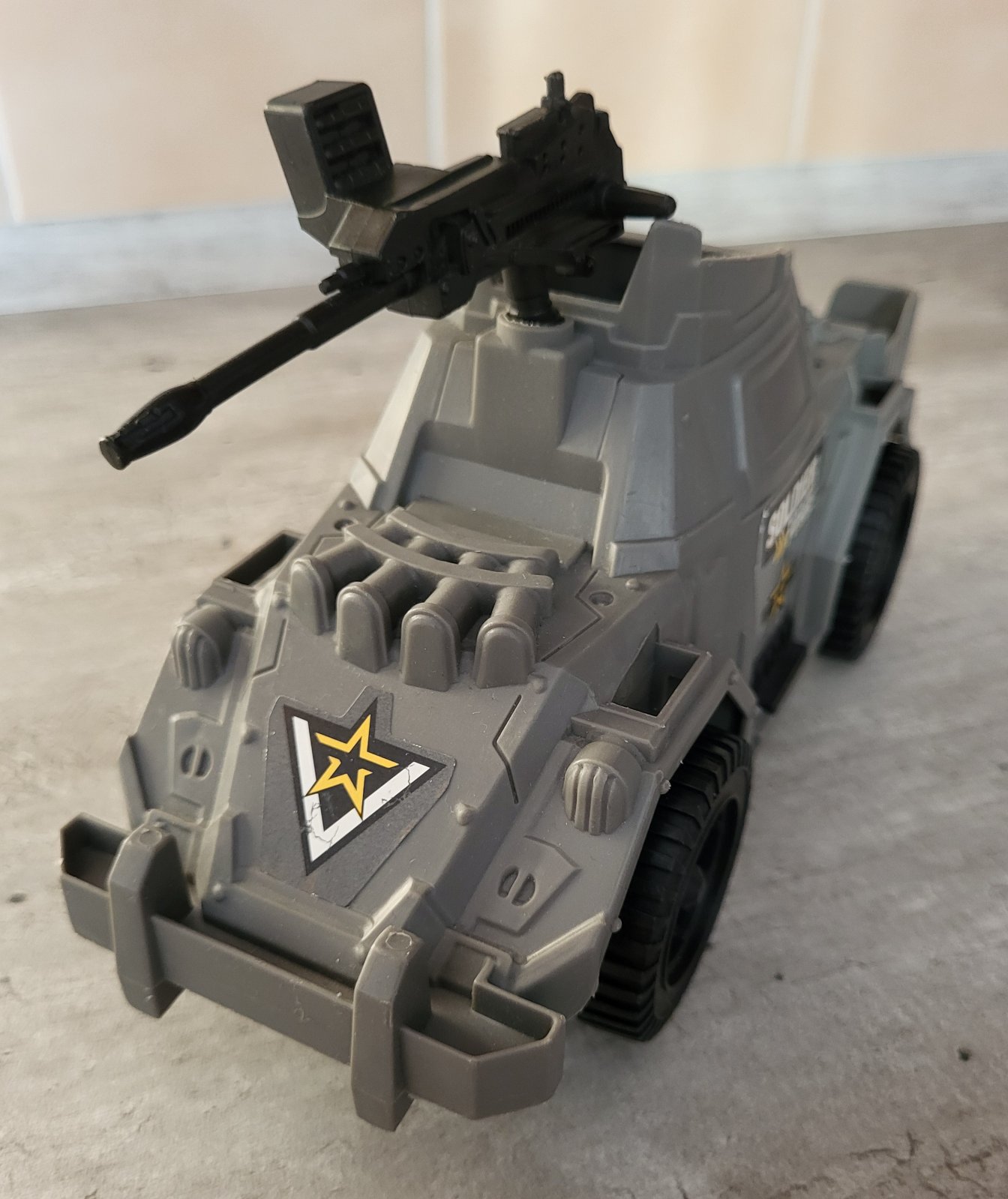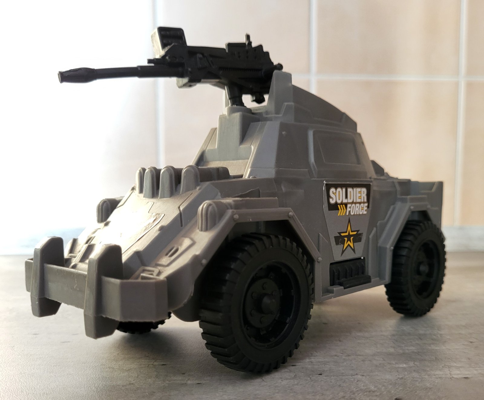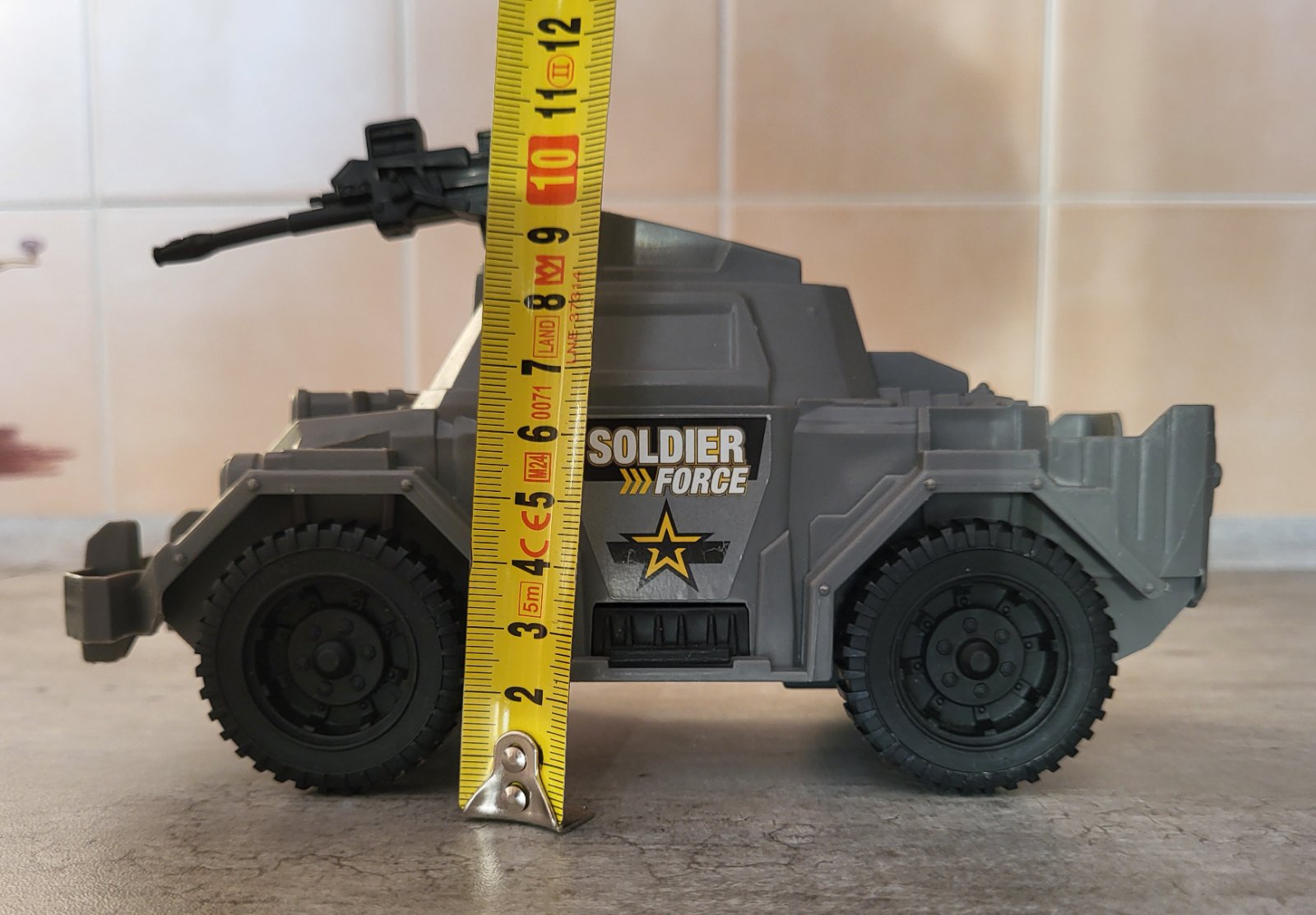 veľmi dobrý stav, plastové, v kabíne miesto pre figúrku, pohyblivý samopal, rozmery na fotkách, pošlem buď poštou alebo packetou