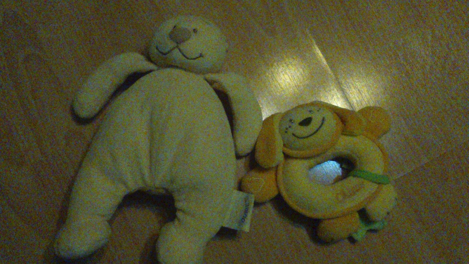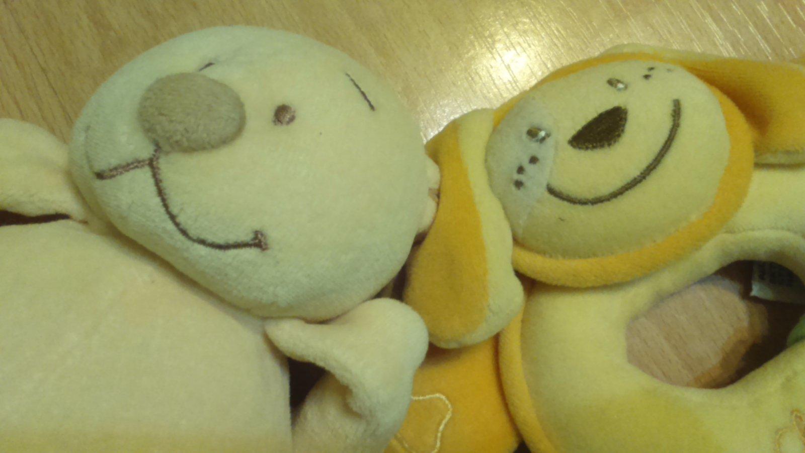 Ako nové.macko hrká, jemnučký, 26 cm. Psík, 16 cm, hrká, šuští.