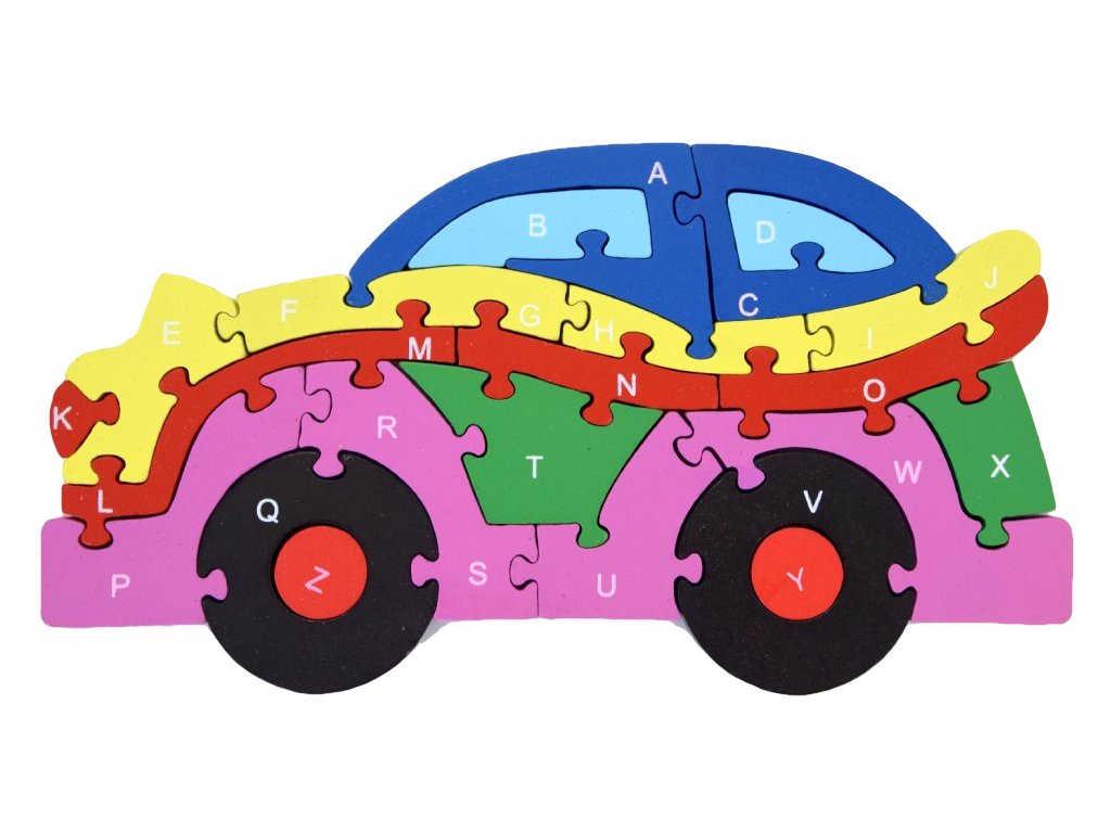 Drevené puzzle- vlak, auto, pes s číslami a písmen
