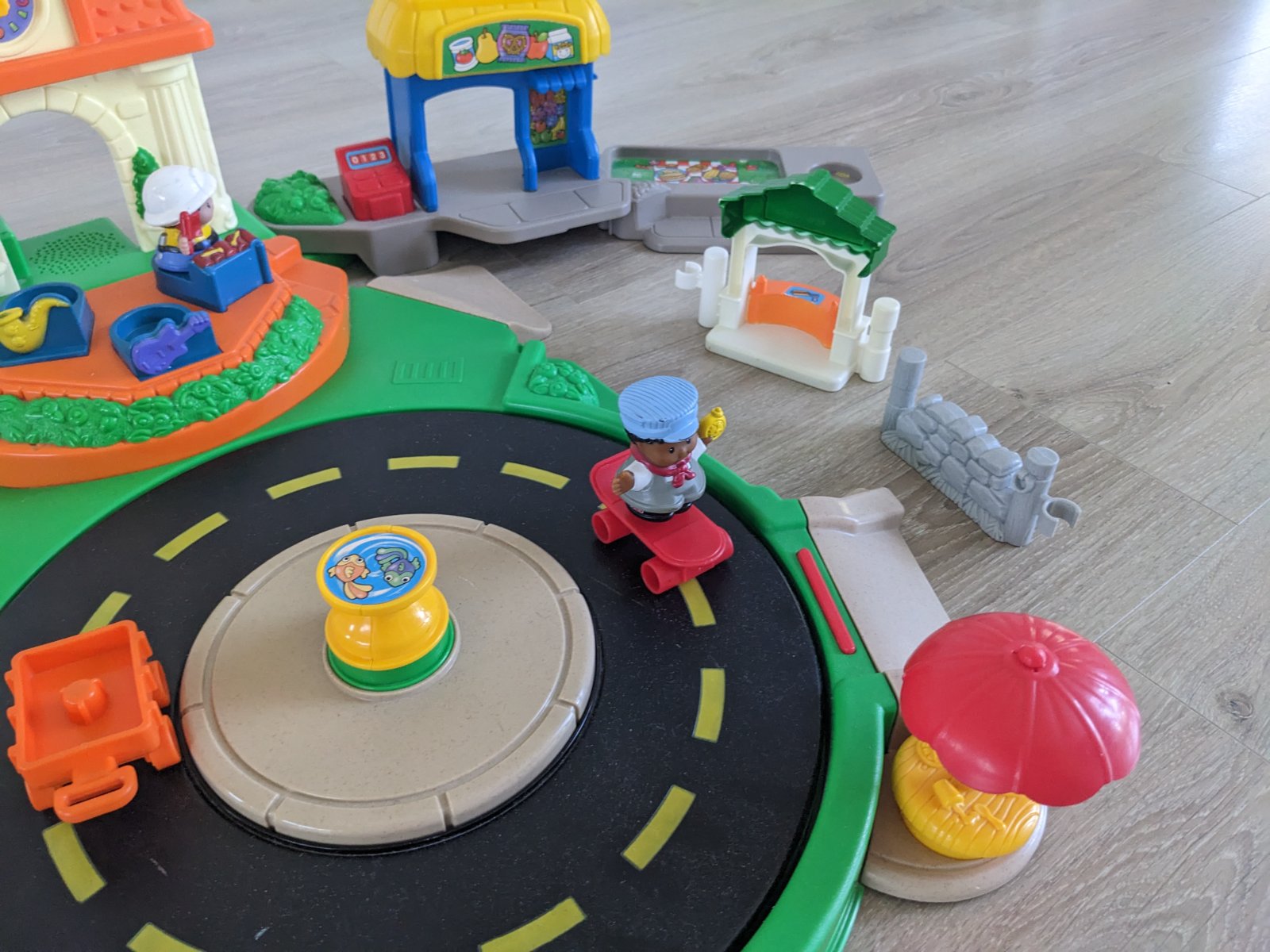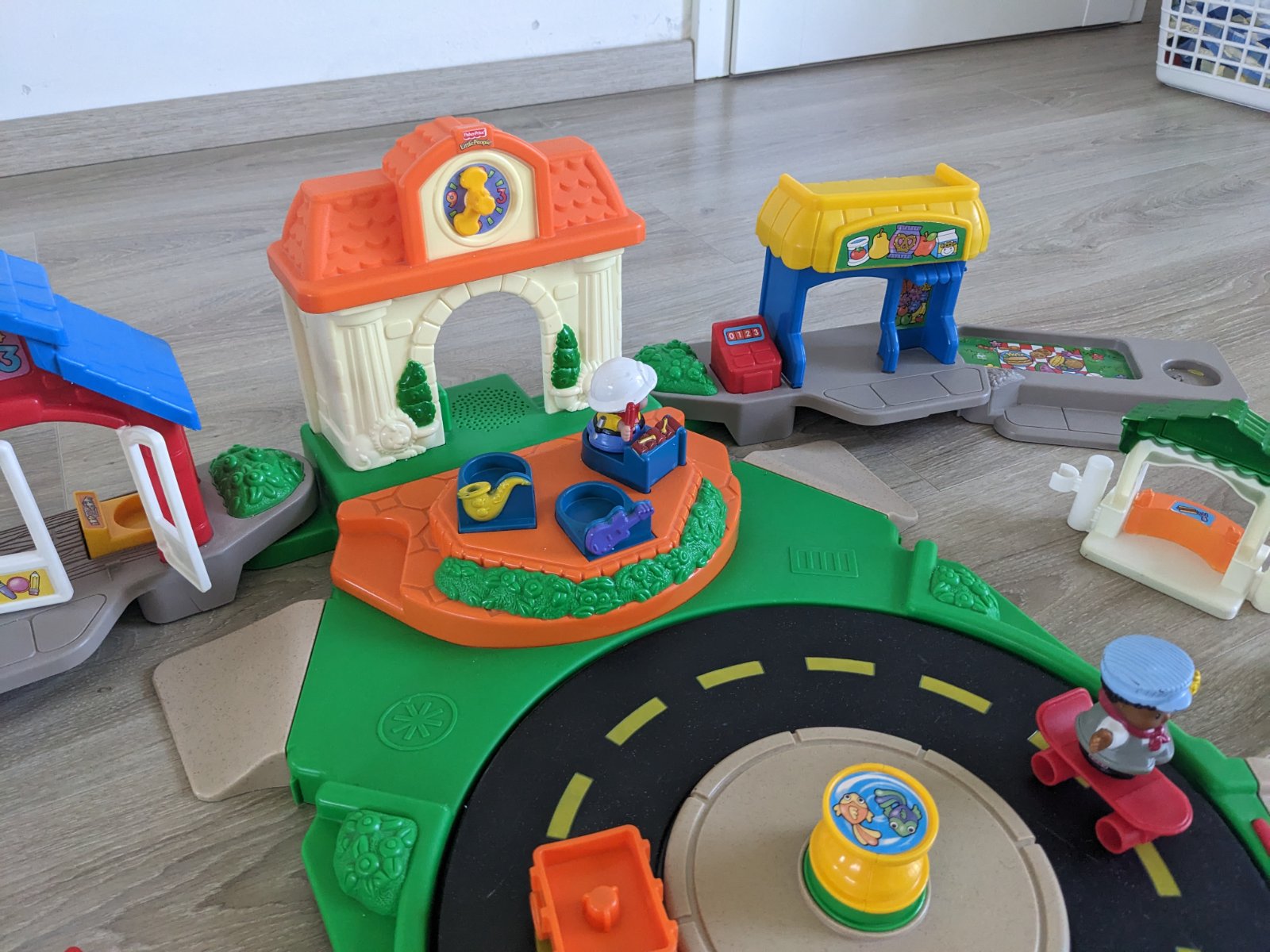 Predám mestečko Little people, už nevyhráva ani sa netočí, možno šikovný ocko opraví, cena za komplet je 20 euro.