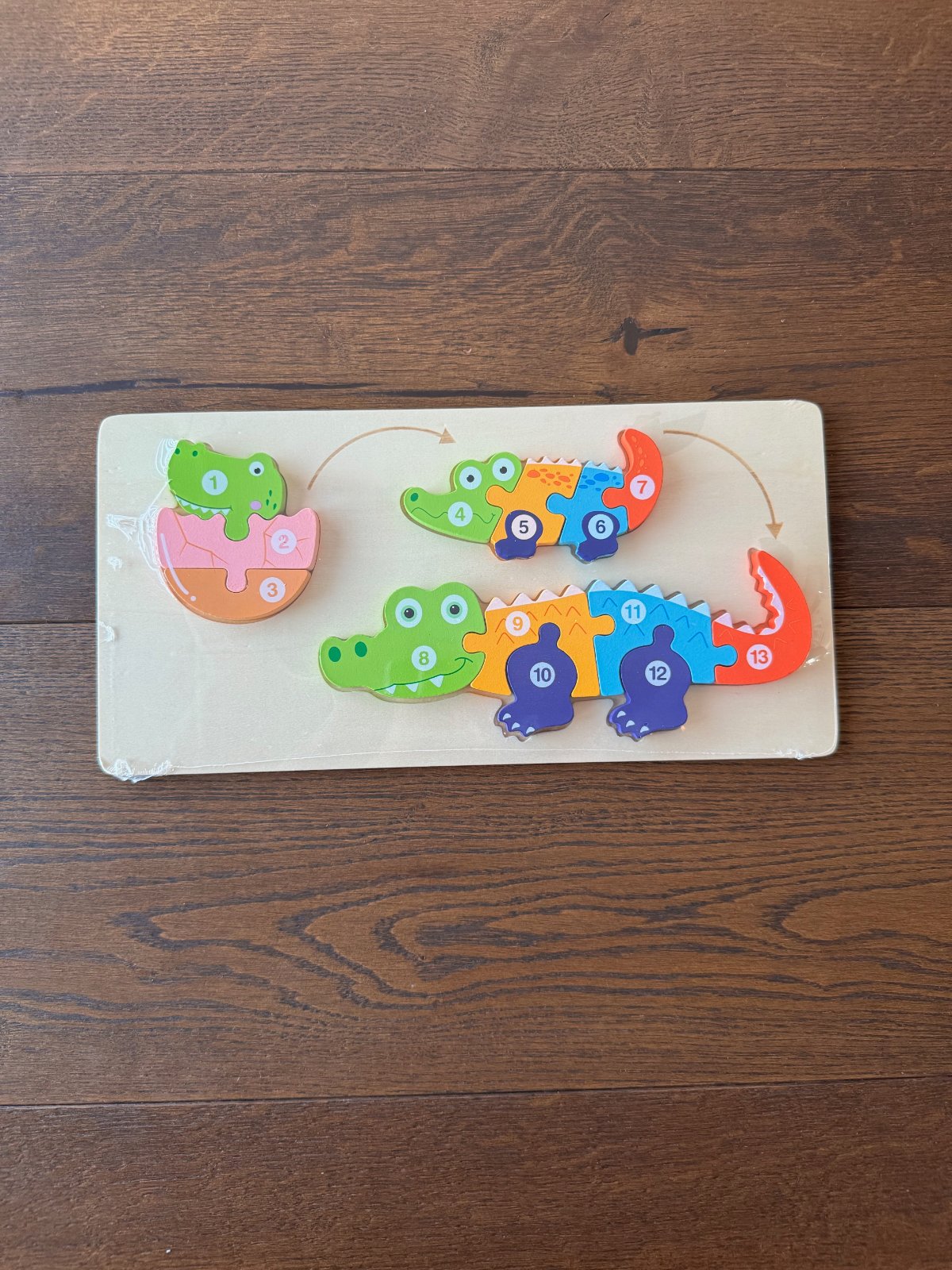 Drevene puzzle pre najmensich zrodenie krokodila. Rozmer uvedeny na foto.