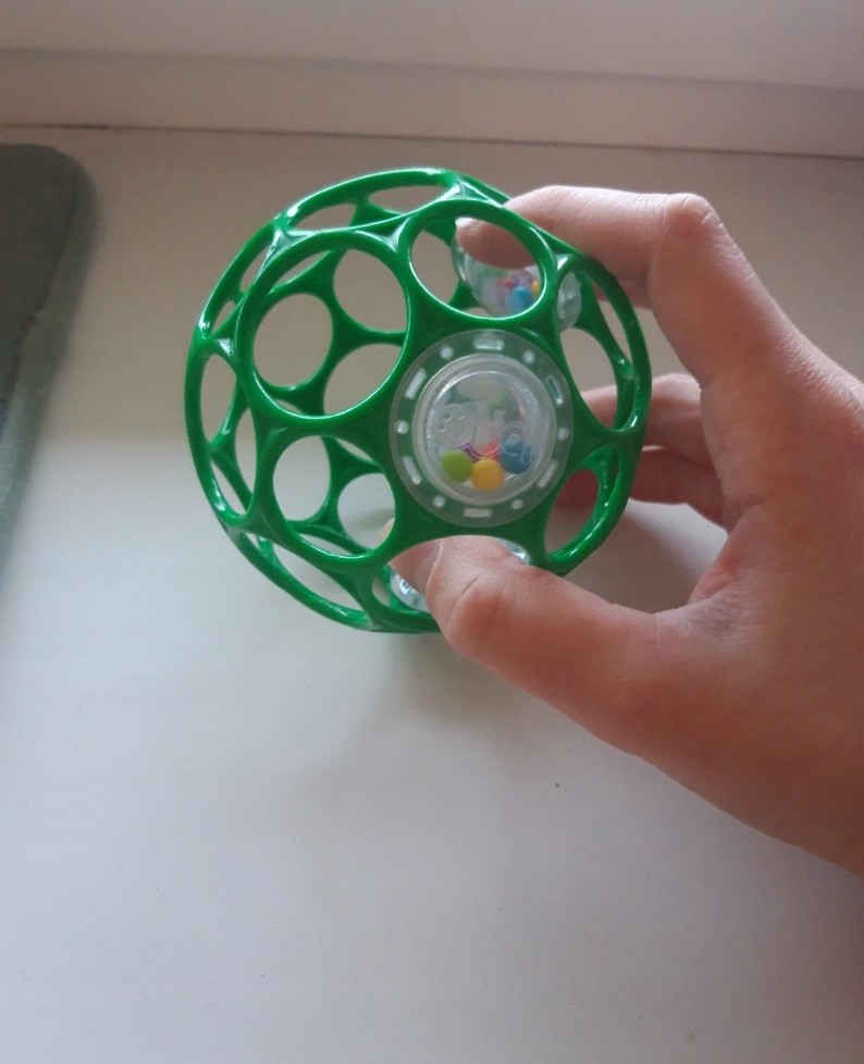 Hrkálka sa stane obľúbenou hračkou dieťatka. Jednoduchý dizajn od Oball zabezpečuje to najjednoduchšie uchopenie aj pre tie najmenšie rúčky, z čoho bude mať vaše dieťatko radosť. Loptička má 29 dierok, ktoré práve umožnia dieťatku jednoduché uchopenie. Je vyrobená z ľahkého materiálu, preto nebude ťažká pre drobné rúčky. V loptičke sa nachádzajú tri hrkálky vyplnené farebnými korálikmi, ktoré vydávajú zábavné zvuky už pri najmenšom zatrasení. Tieto zvuky neustále povzbudzujú dieťatko, aby loptičku držalo v rukách a triaslo s ňou.