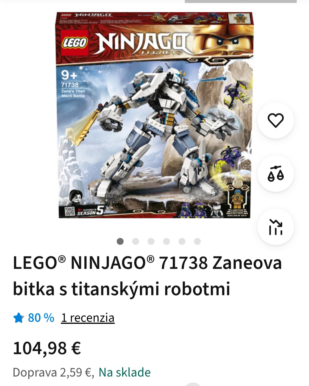 LEGO NINJAGO 71738 STRET TITÁNOV MACH ZANE - so špeciálnou zlatou zberateľskou minifigurkou.