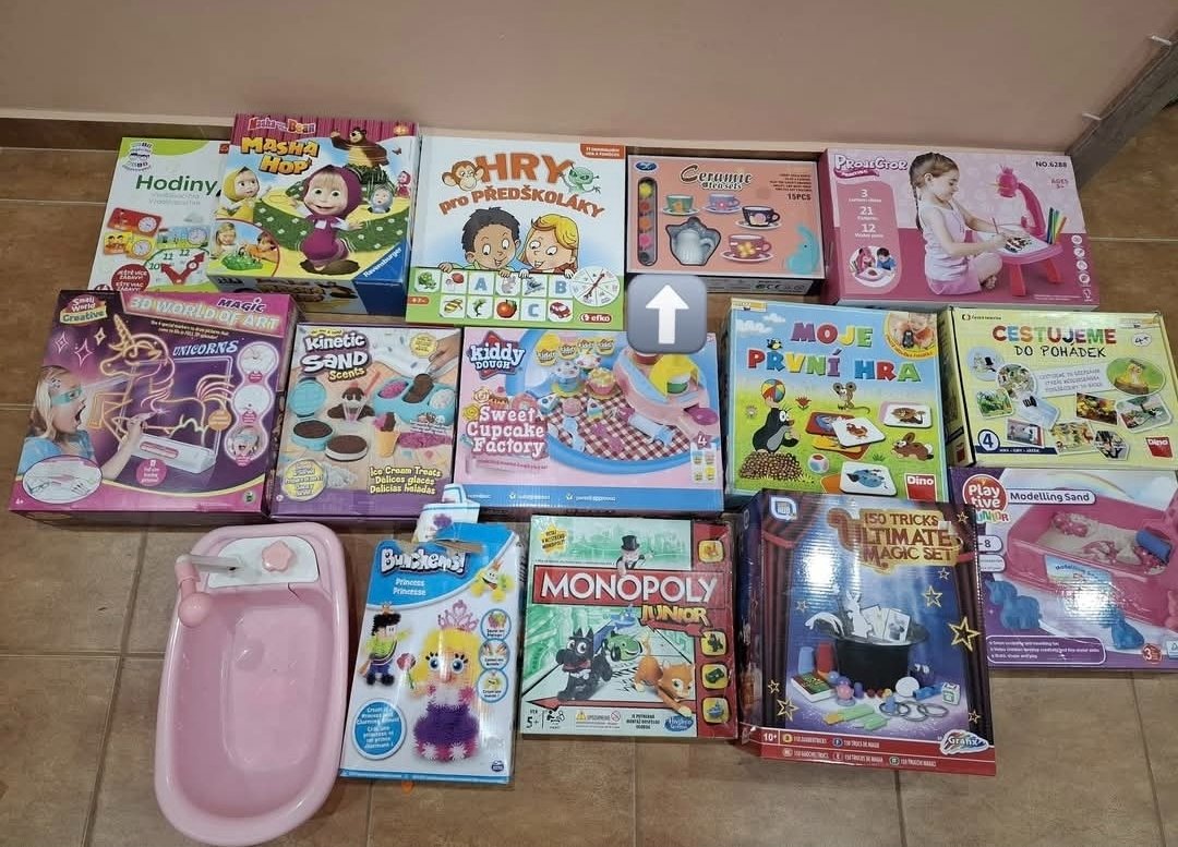 Monopoly, cestujeme do pohadek, vanička cez sprchu ide aj voda, kineticky piesok zvieratka 5€/1ks