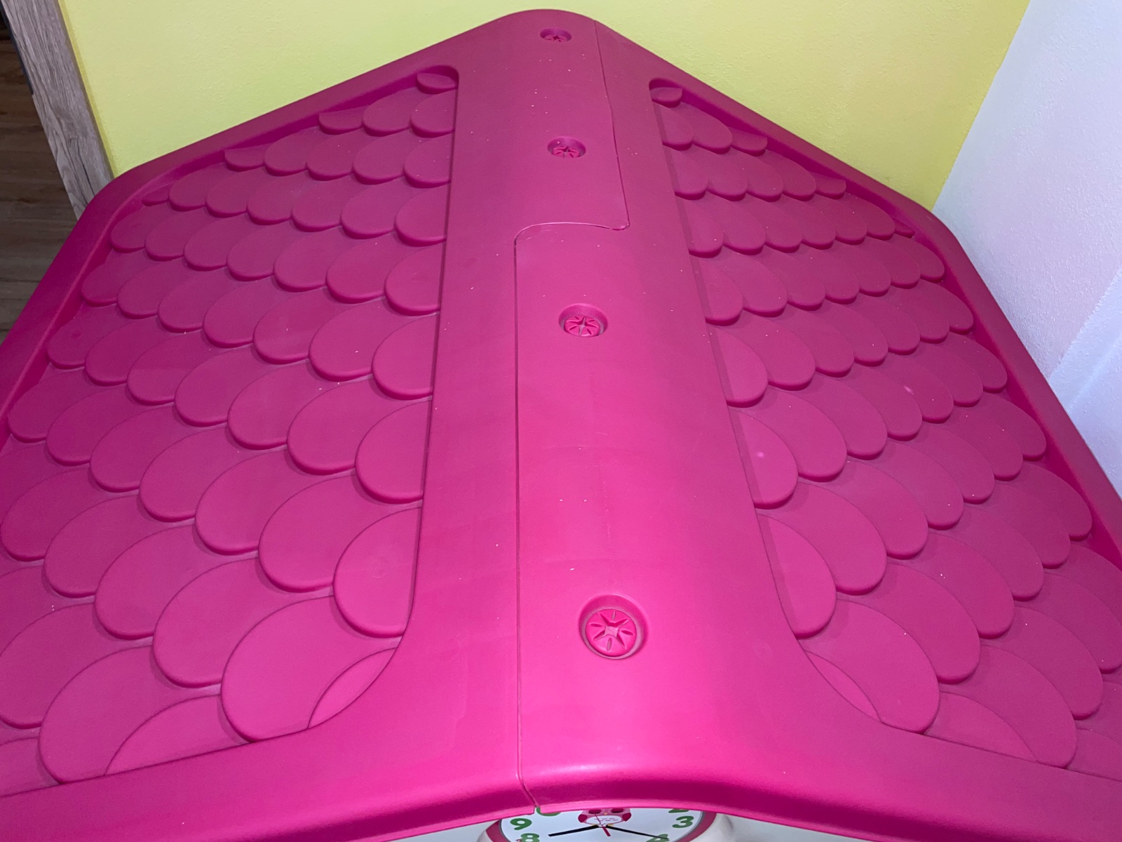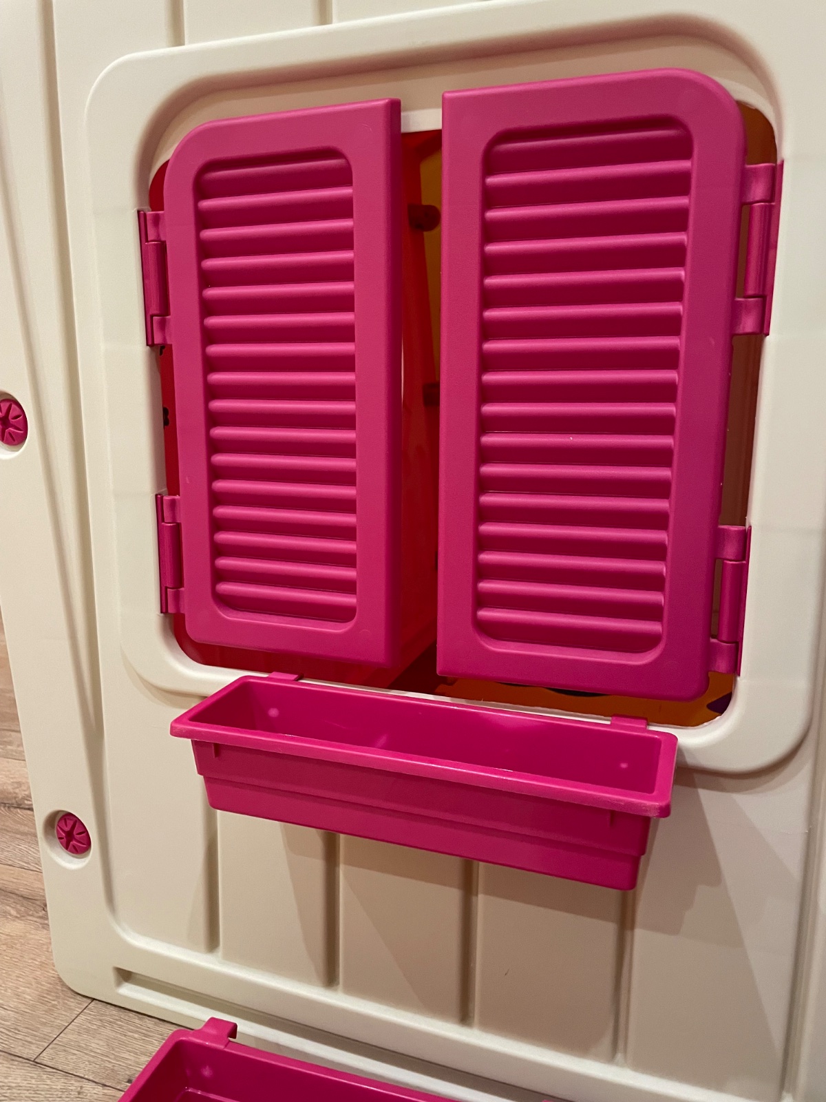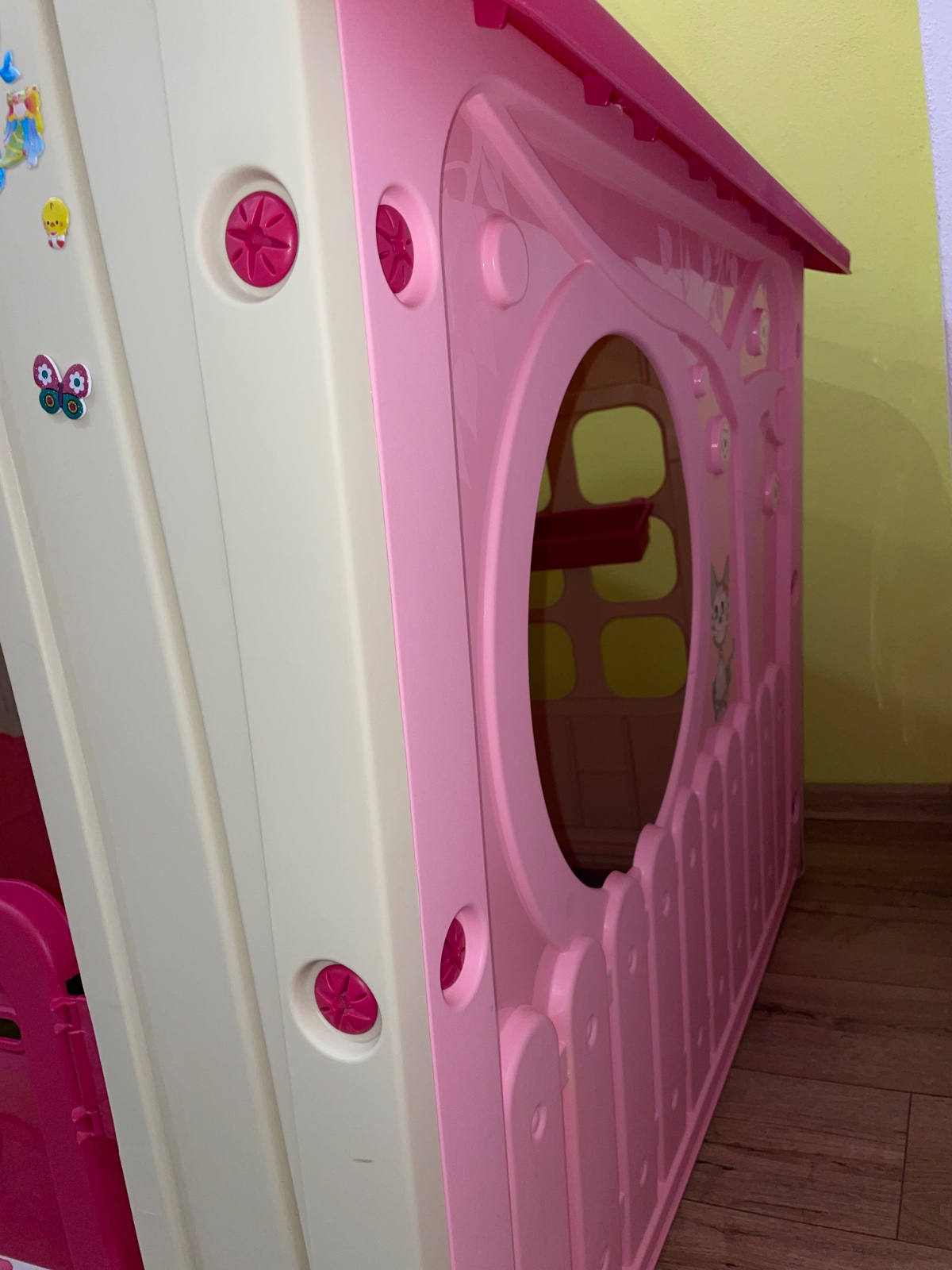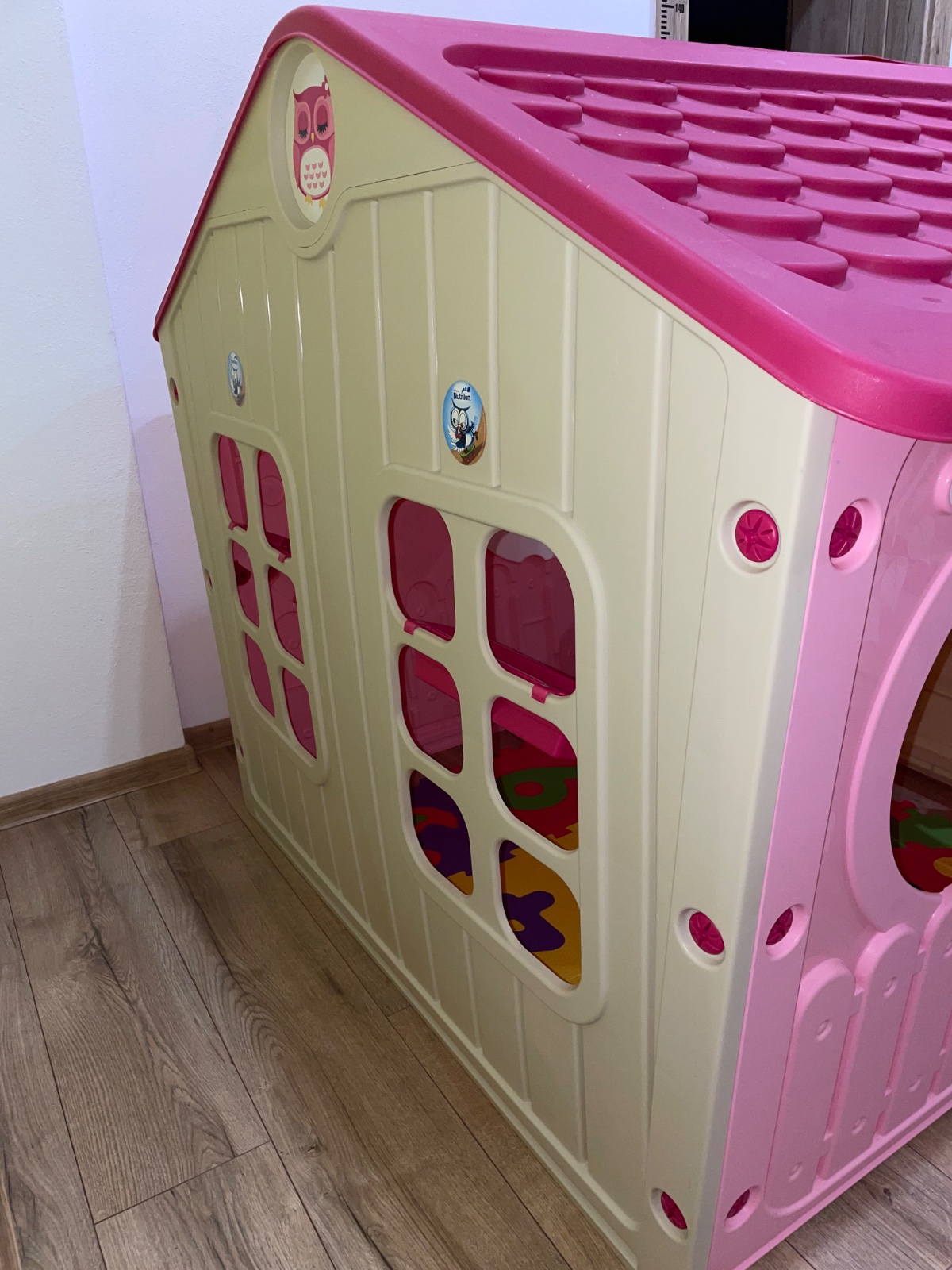 Rozmery domčeka: šírka 115 cm, hĺbka 109 cm, výška v najvyššom bode 115 cm, v najnižšom 85 cm, dvere 36x83 cm, okno 35x35 cm