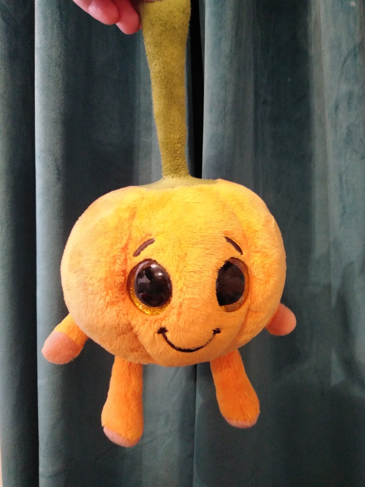 Milá tekvička sýto oranžovej farby, krásne očká, mäkká, plyšová, dá sa zavesiť, prichytiť, výška v sediacom stave je 12 cm (bez stopky), šírka 17 cm. Hračka, ktorú viete využiť aj v rámci vzdelávania o zdravej strave 😊 alebo haloweenska dekoracia
