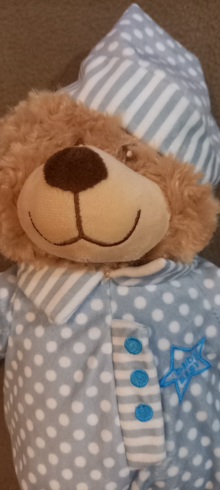 Značka Fisher price. Hrá upokojujúce melódie, bruško sa pohybuje hore dole, lampa svieti, hračka dýcha, bije mu srdiečko. Toto všetko sa dá zvlášť vypínať podľa potreby. Super pomôcka na zaspávani...