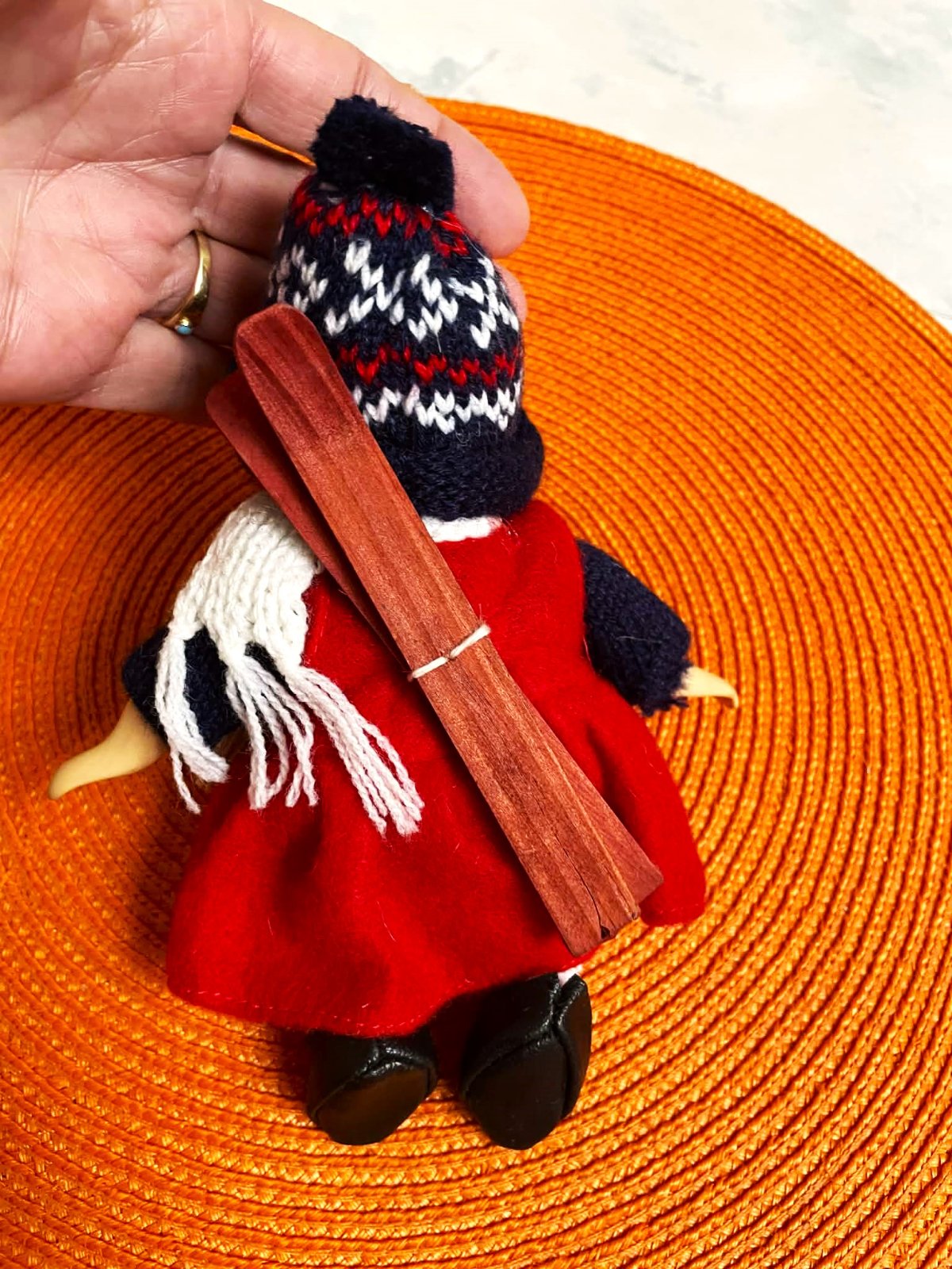 Porcelánová vianočná bábika/lyžiarka