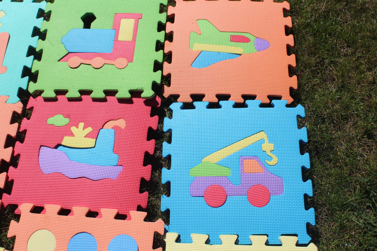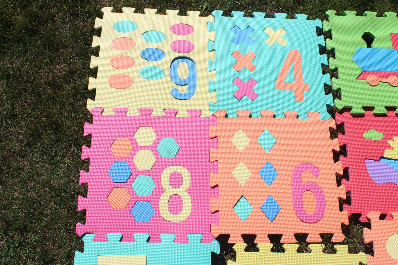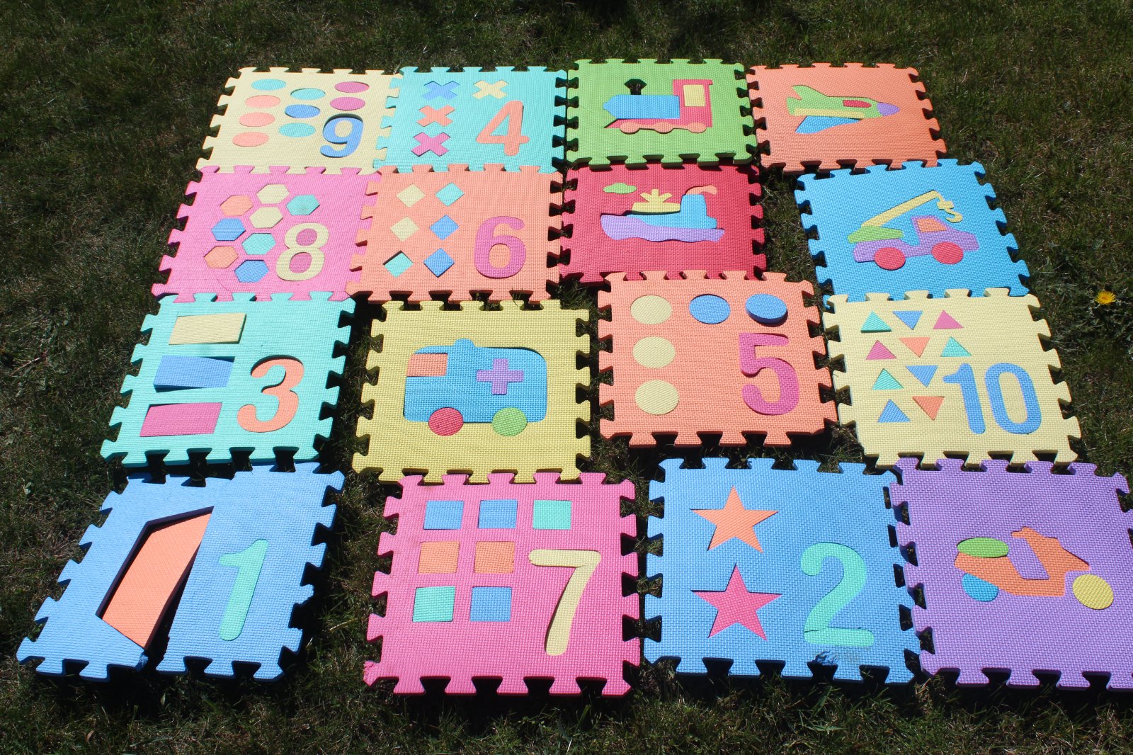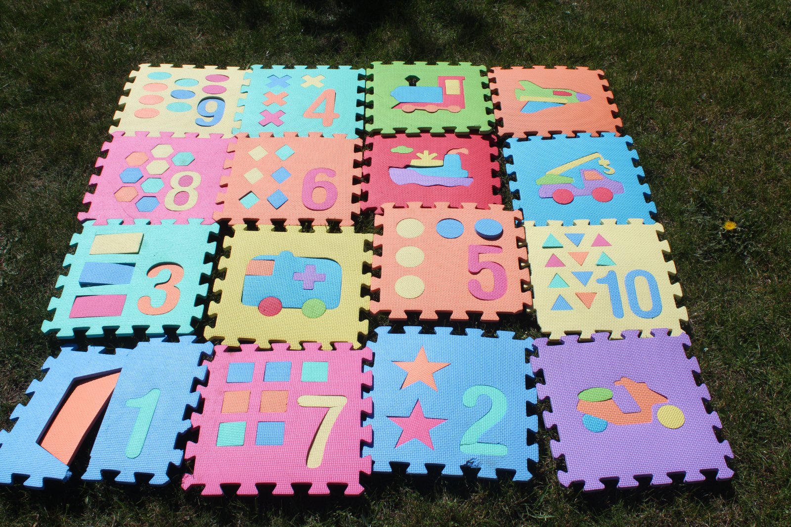 V dobrom, používanom stave. Odporúčam používať vonku, buď na posedenie alebo menšie časti sú vhodné aj do bazéna. Okrem sedenia sú vhodné aj na učenia sa farieb, vzorov, čísel, ... Preferujem osobný odber.