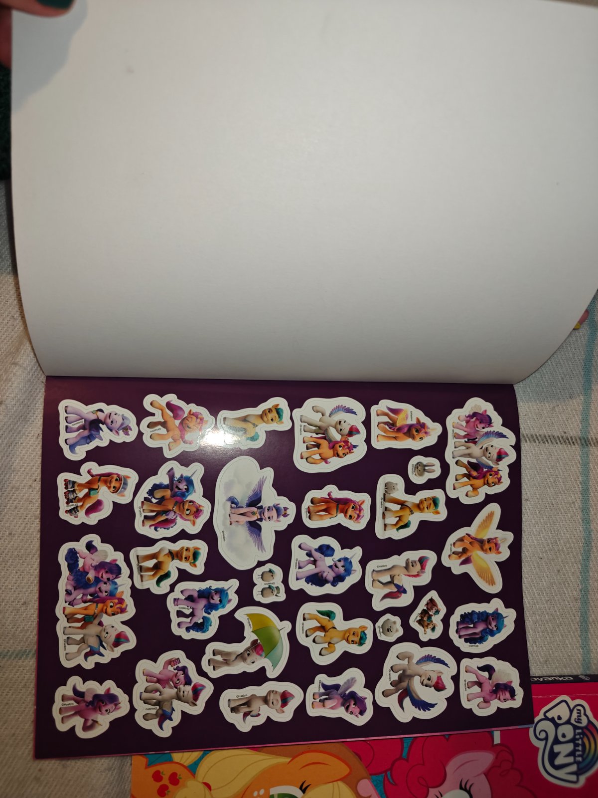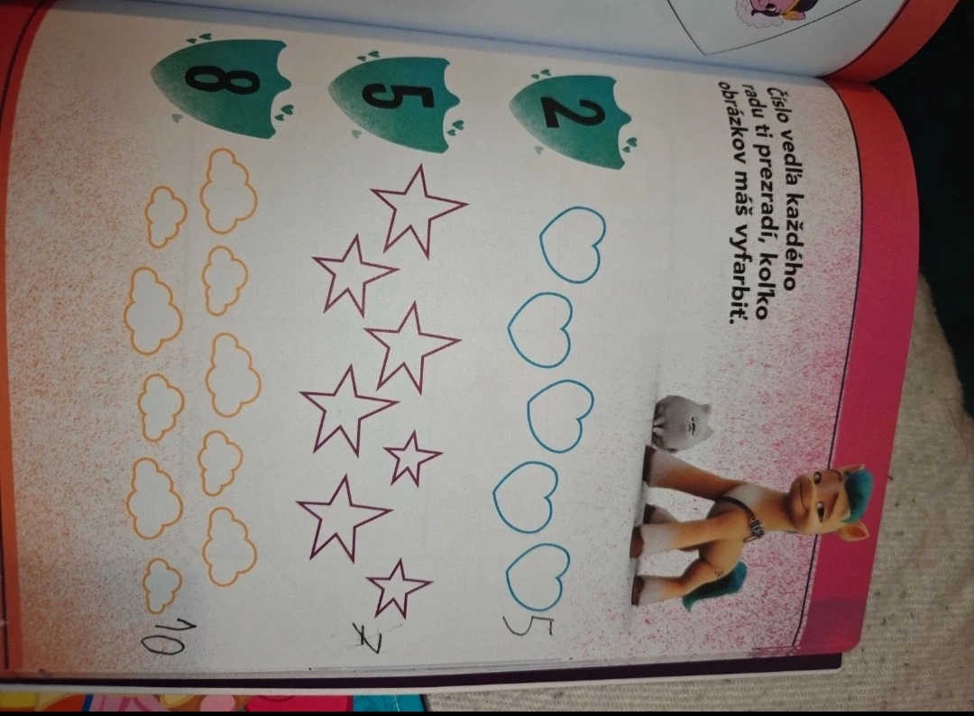 Zábavné úlohy cca 4-5 strá spravené viď fotka ( dá sa troška vygumovať )A maľovánky jedna dvojstrana vymaľovaná a jeden obrázok čiastočne. Dú tam aj nálepky