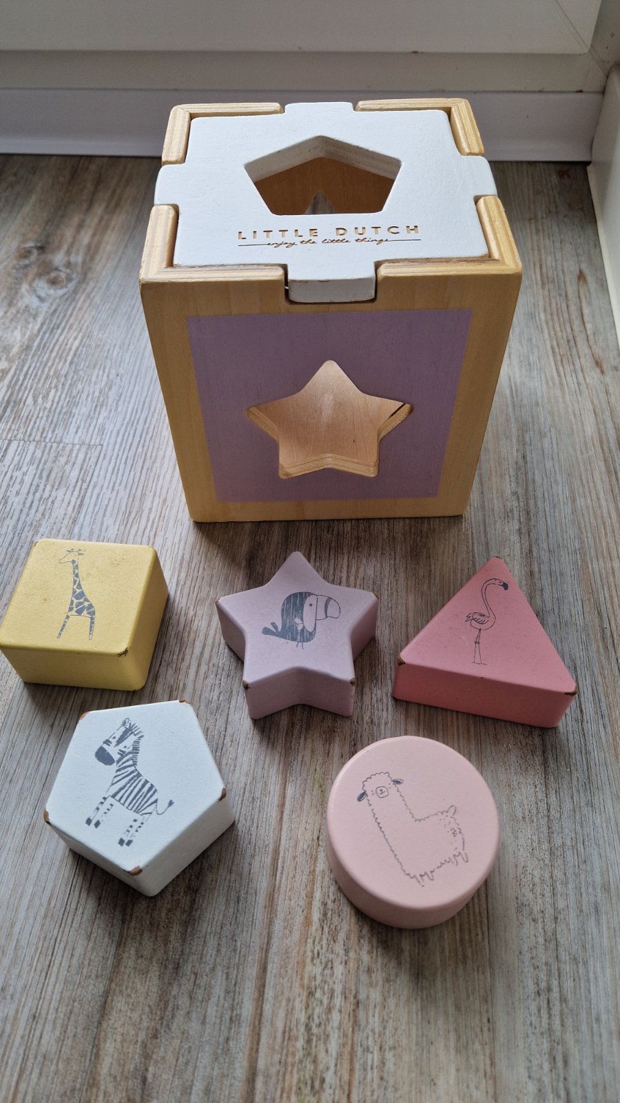 Nová, nehraná drevená hračka vhodná od 18 mesiacov. S krabicou, vhodná aj ako darček. Na stránke slovenského predajcu sa predáva za 20e. Moja cena 15e+poštovné Veselý škriatok v špicatej pruhovane...