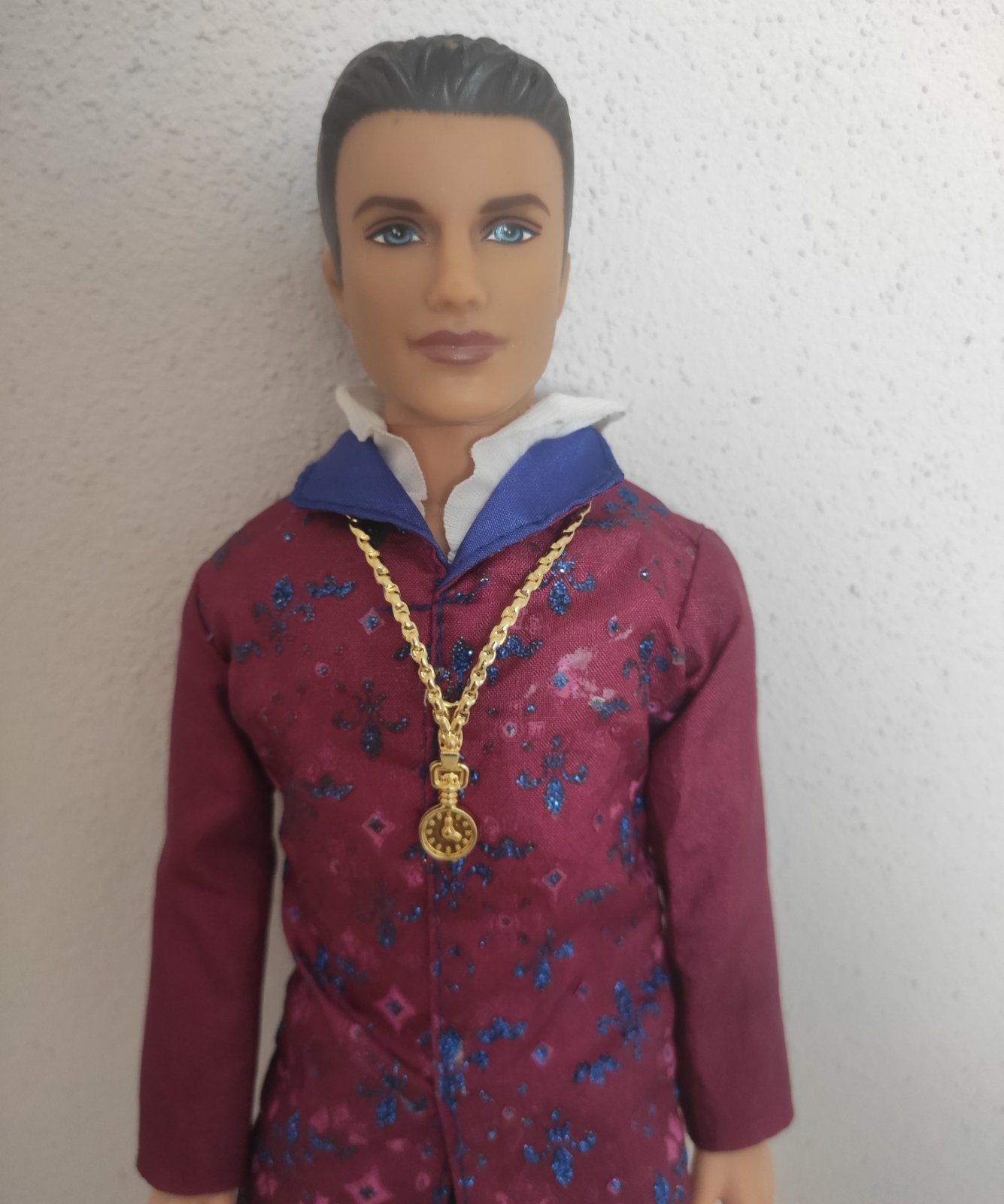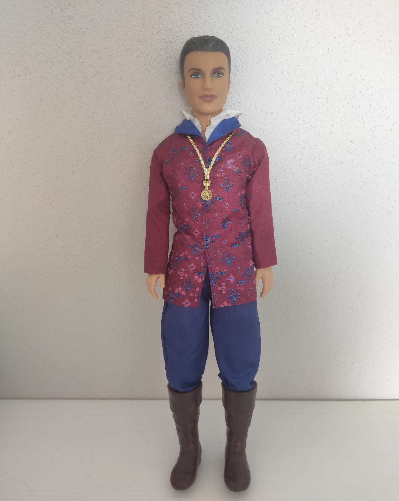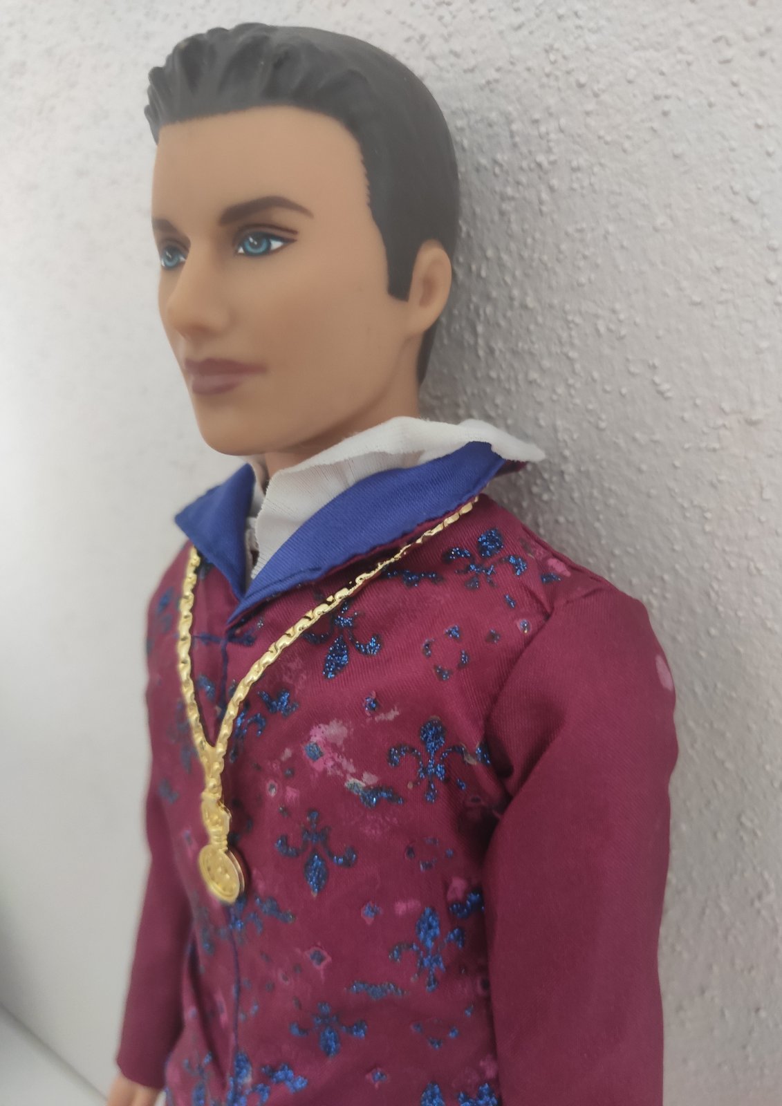 Ken - princ od Mattela. Myslim ze je to princ Ian z Diamantoveho zamku ( Prince from daimond castle , 2008). Hraný minimalne, klbiky pevne. Na kabátiku na ramene ma biely fliačik ,viď foto. Cena: 20 €.