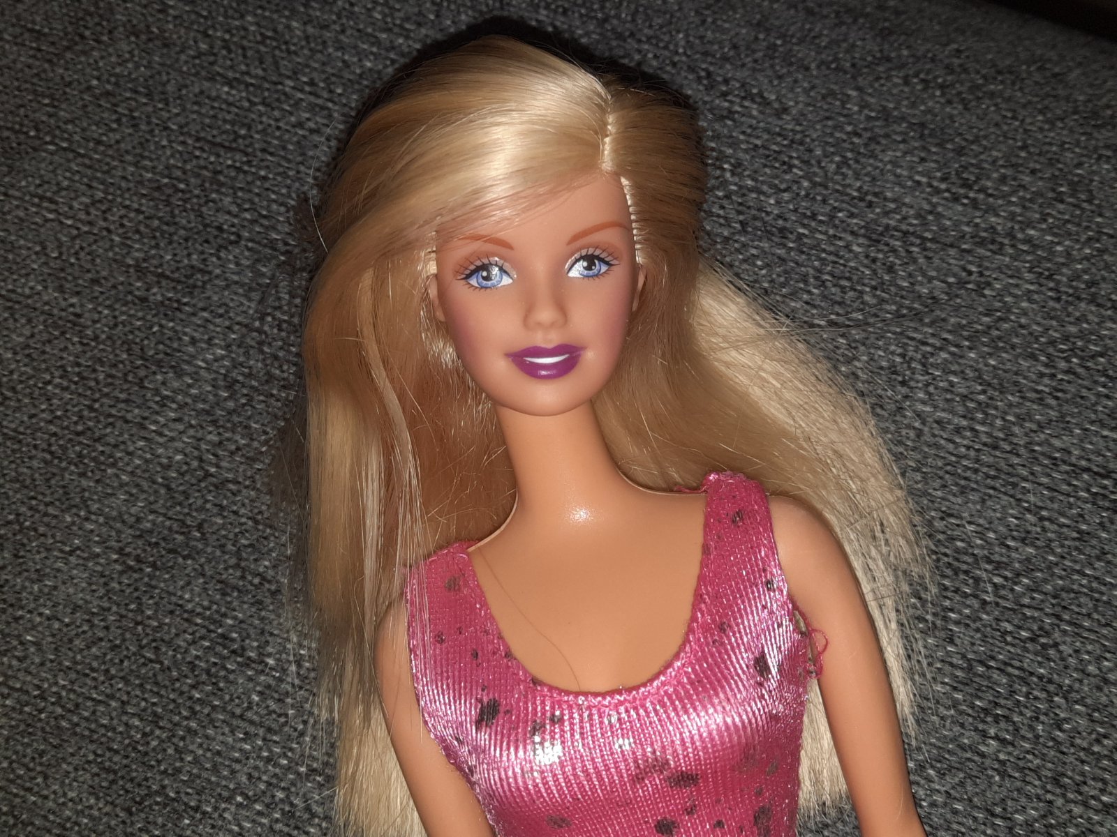 Má oblečené ružové šaty z Barbie Chic 2002.