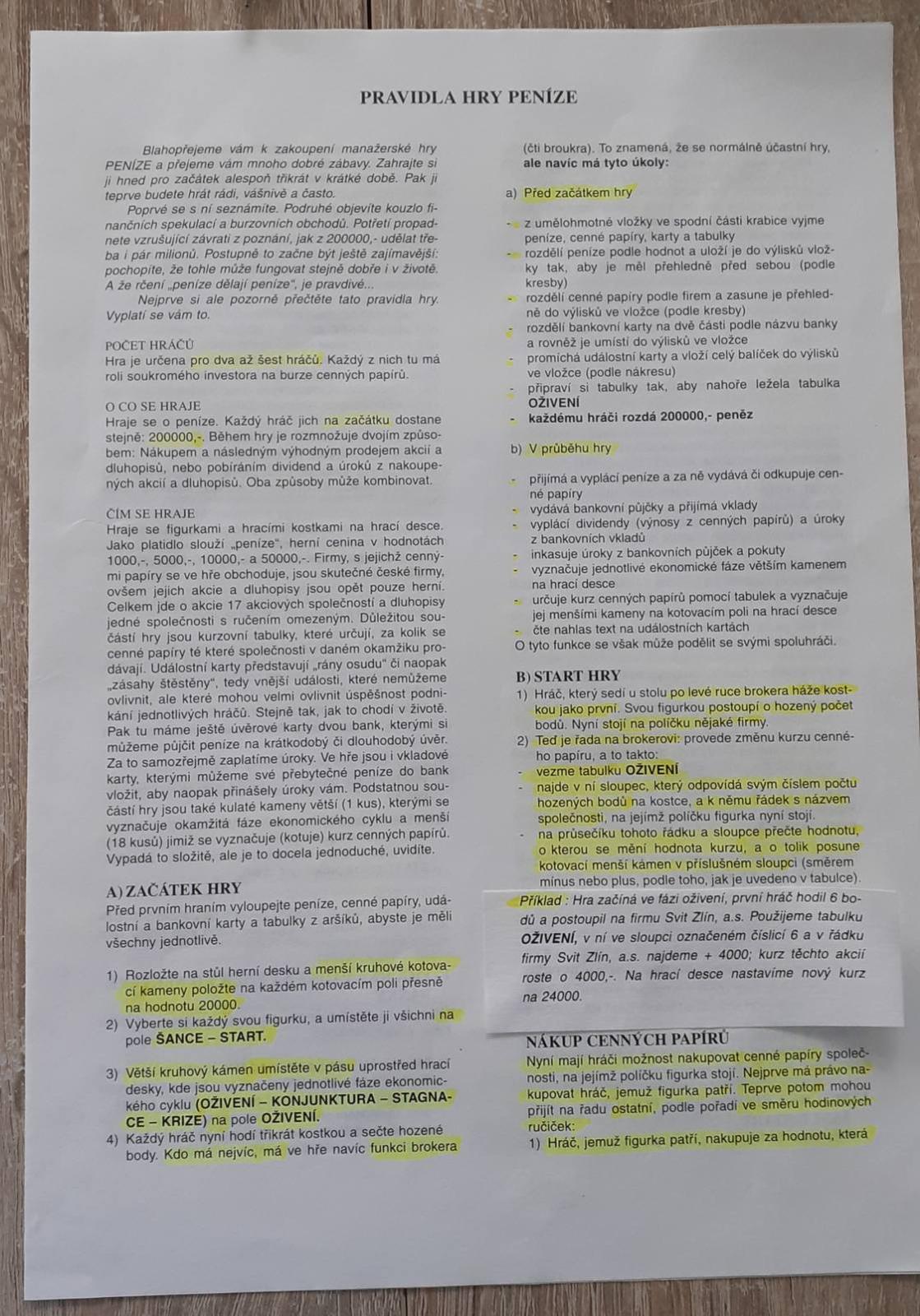 Peniaze sú manažérska hra, v ktorej sú obsiahnuté skutočné české firmy a banky. Pravidlá hry rešpektujú zákonitosti reálneho podnikania a obchodovania s cennými papiermi. Hra ukazuje, aké ekonomické podmienky ovplyvňujú hodnoty cenných papierov, pri ktorých podnikoch je lepšie staviť na dividendy a pri ktorých sa oplatí špekulovať s kúpou a predajom akcií.