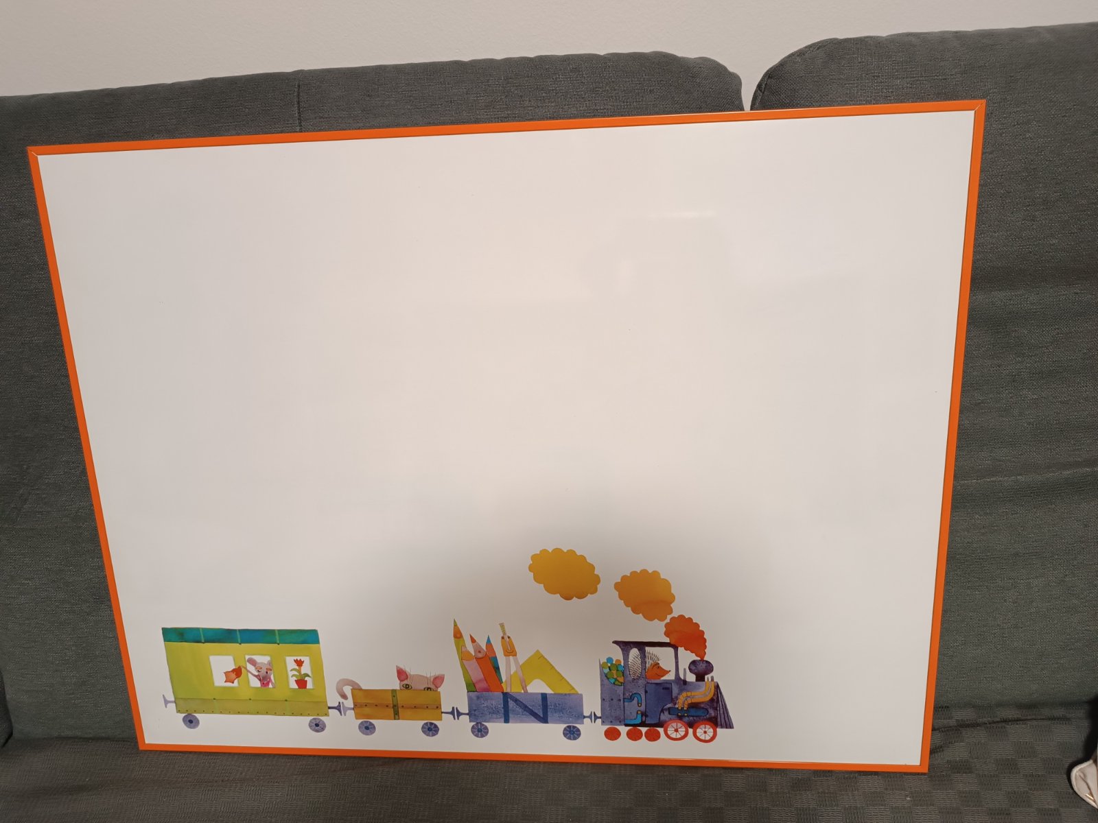 Predám magnetickú tabuľu rozmer 59x78 cm s krásnym detským motívom a oranžovým rámom. Vhodná aj na písanie fixkami.