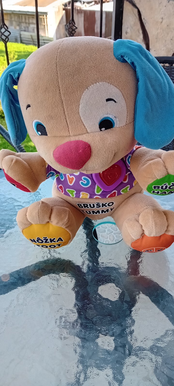Značka Fisher price. Hrá upokojujúce melódie, bruško sa pohybuje hore dole, lampa svieti, hračka dýcha, bije mu srdiečko. Toto všetko sa dá zvlášť vypínať podľa potreby. Super pomôcka na zaspávani...