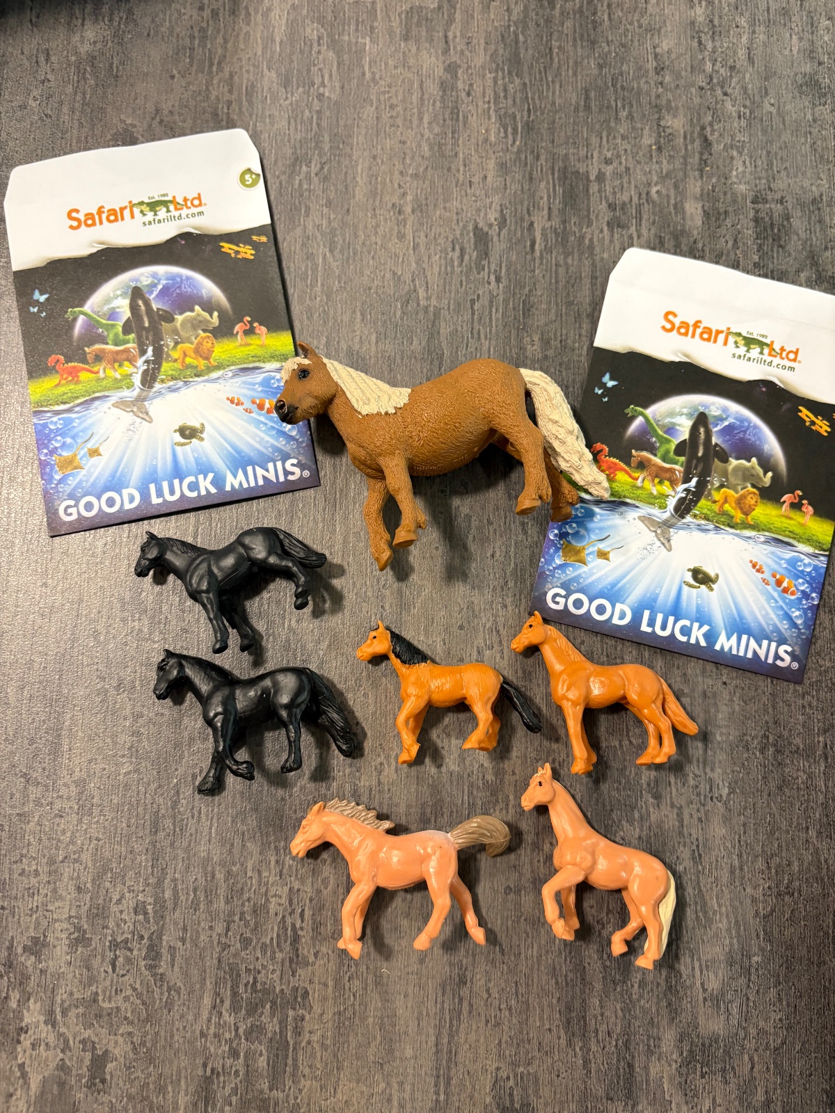 A.181118.Sada figurok 8 konikov, jeden velky a 7 mensie - zvierata od znacky Safari ltd…rozne druhy…