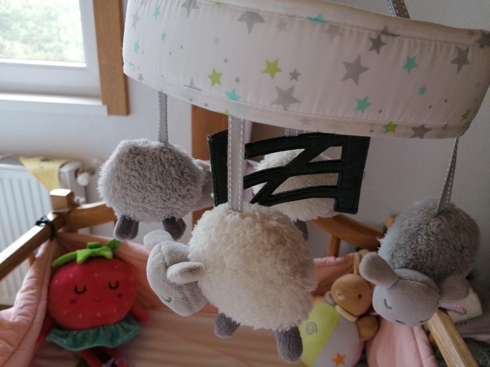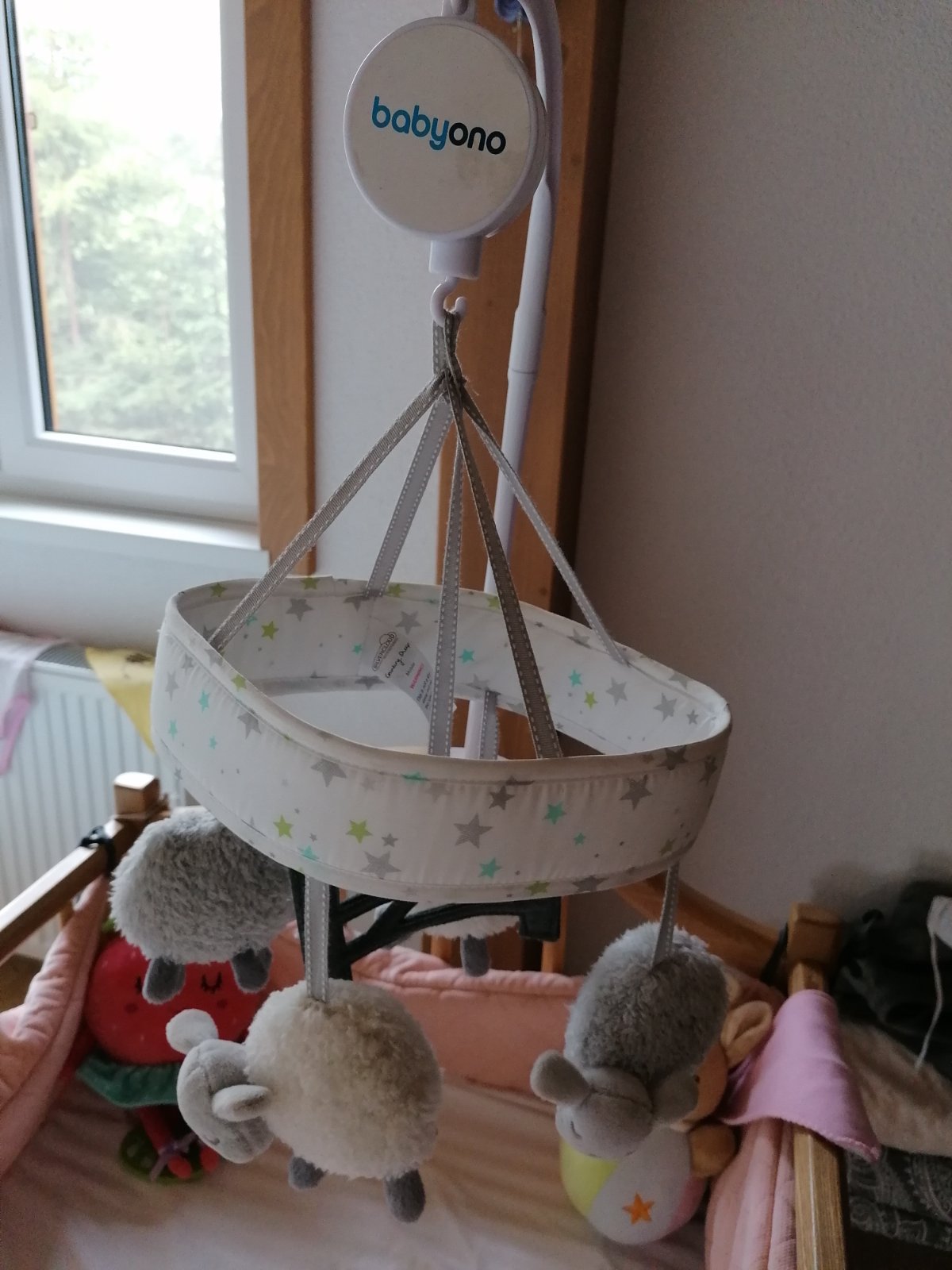 Značka Fisher price. Hrá upokojujúce melódie, bruško sa pohybuje hore dole, lampa svieti, hračka dýcha, bije mu srdiečko. Toto všetko sa dá zvlášť vypínať podľa potreby. Super pomôcka na zaspávani...
