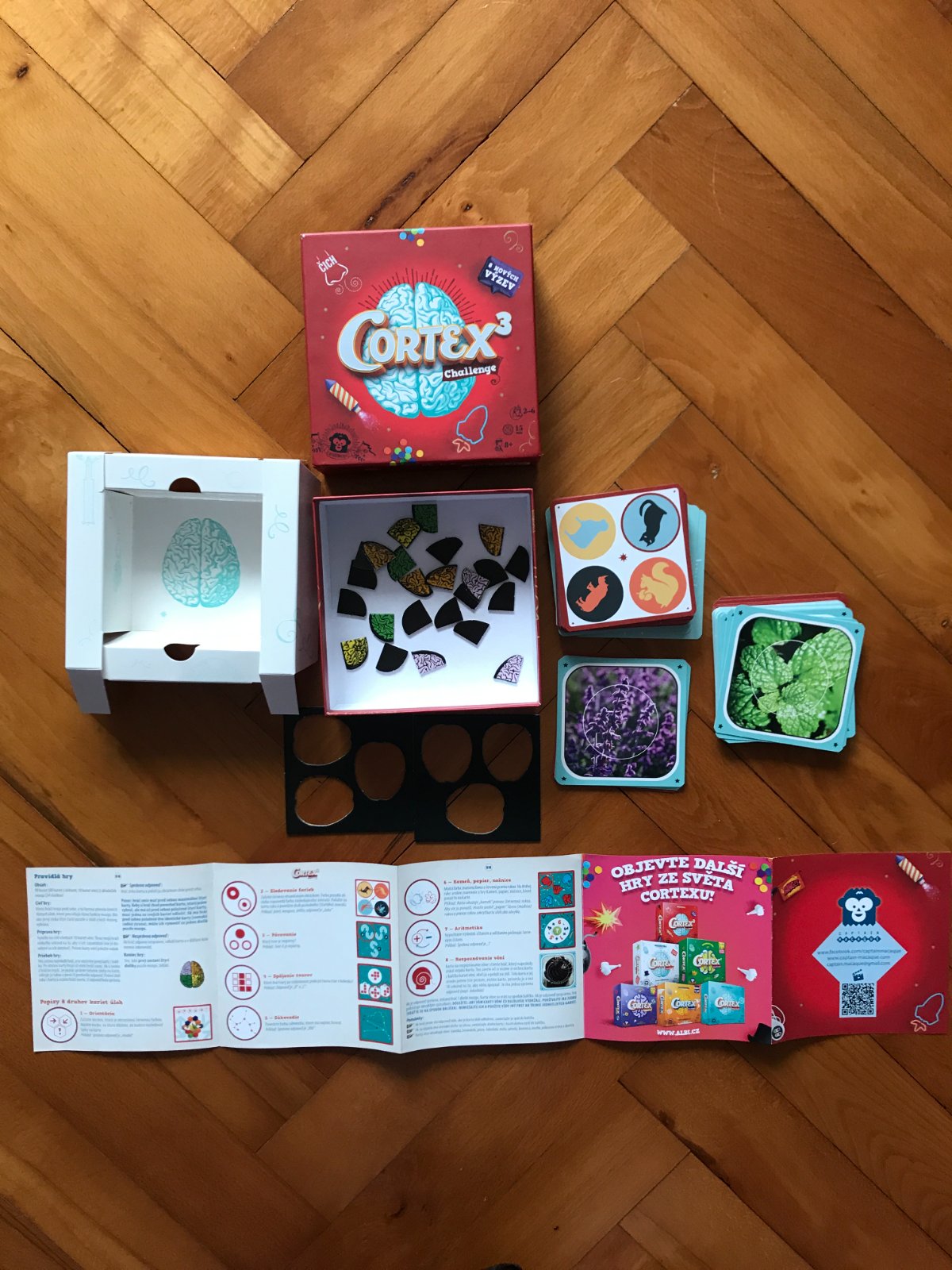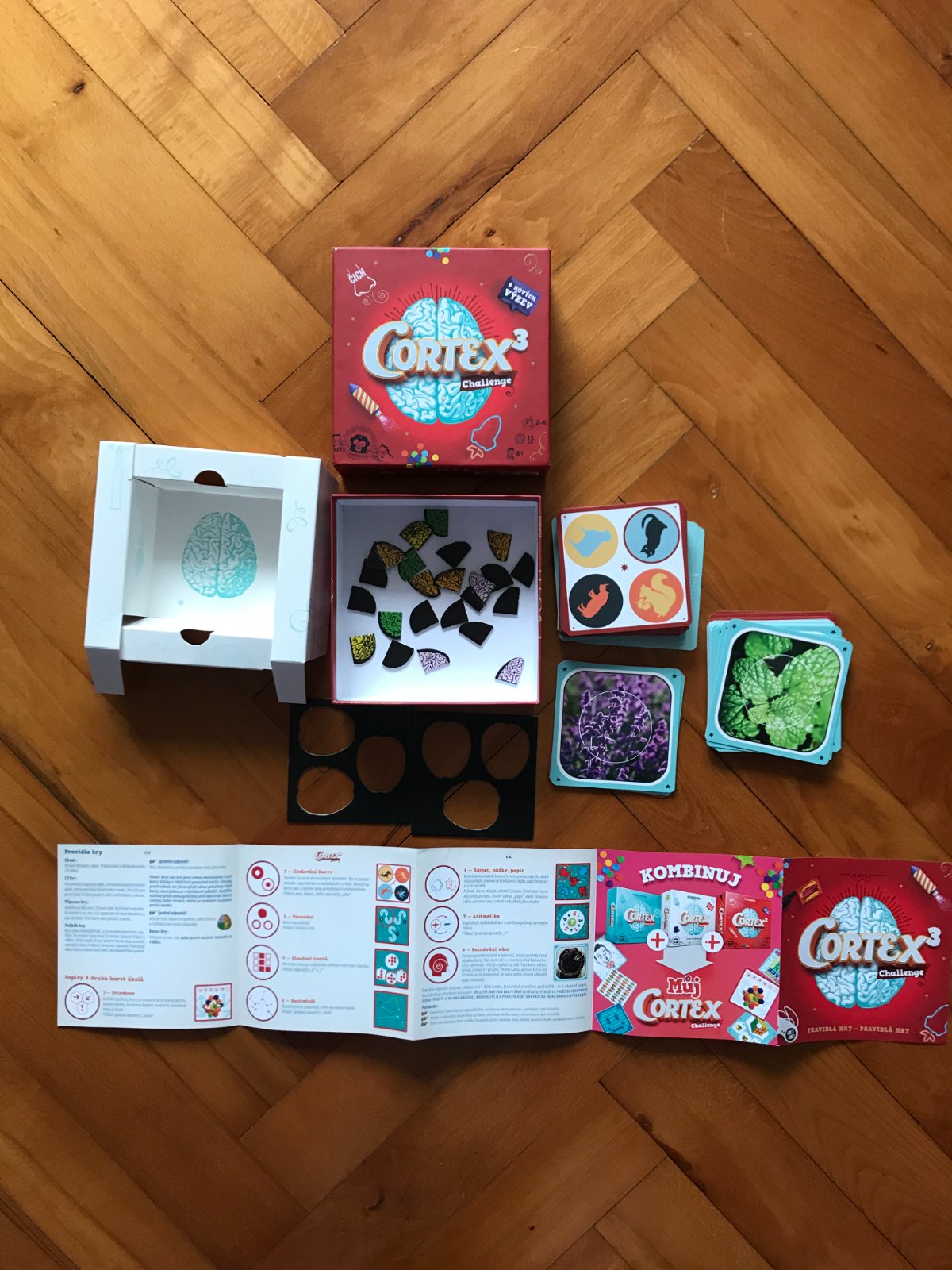 90 kariet s úlohami, 6 puzzle mozgu - celkom 24 častíc a pravidlá.
