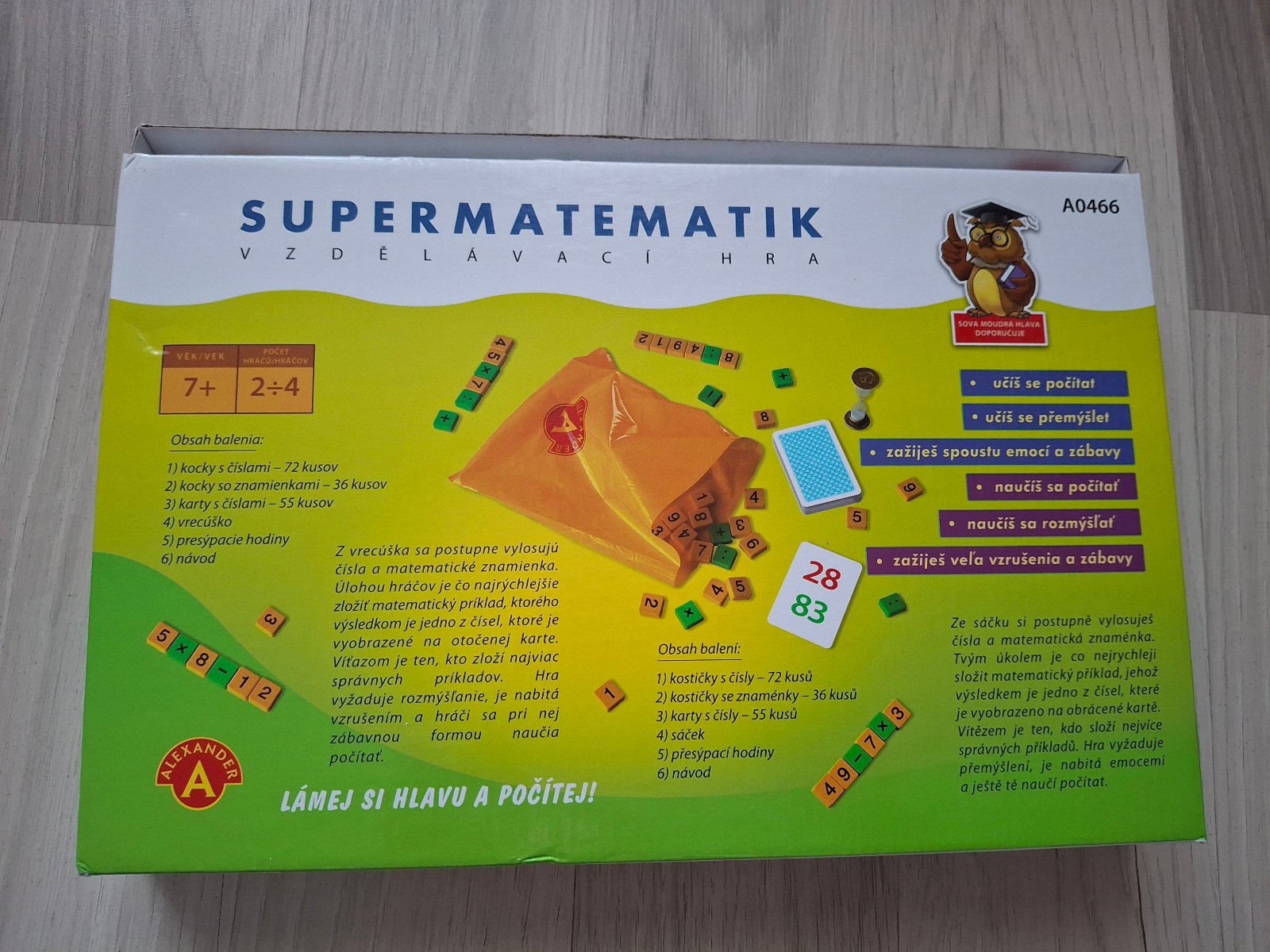 V balení je aj návod v slovenskom jazyku a obsahuje vždy dve možnosti hry, jednu pre menšie deti, ktoré vedia zatiaľ iba sčítať a odčítať a jednu pre staršie deti, ktoré už vedia aj násobiť a deliť.