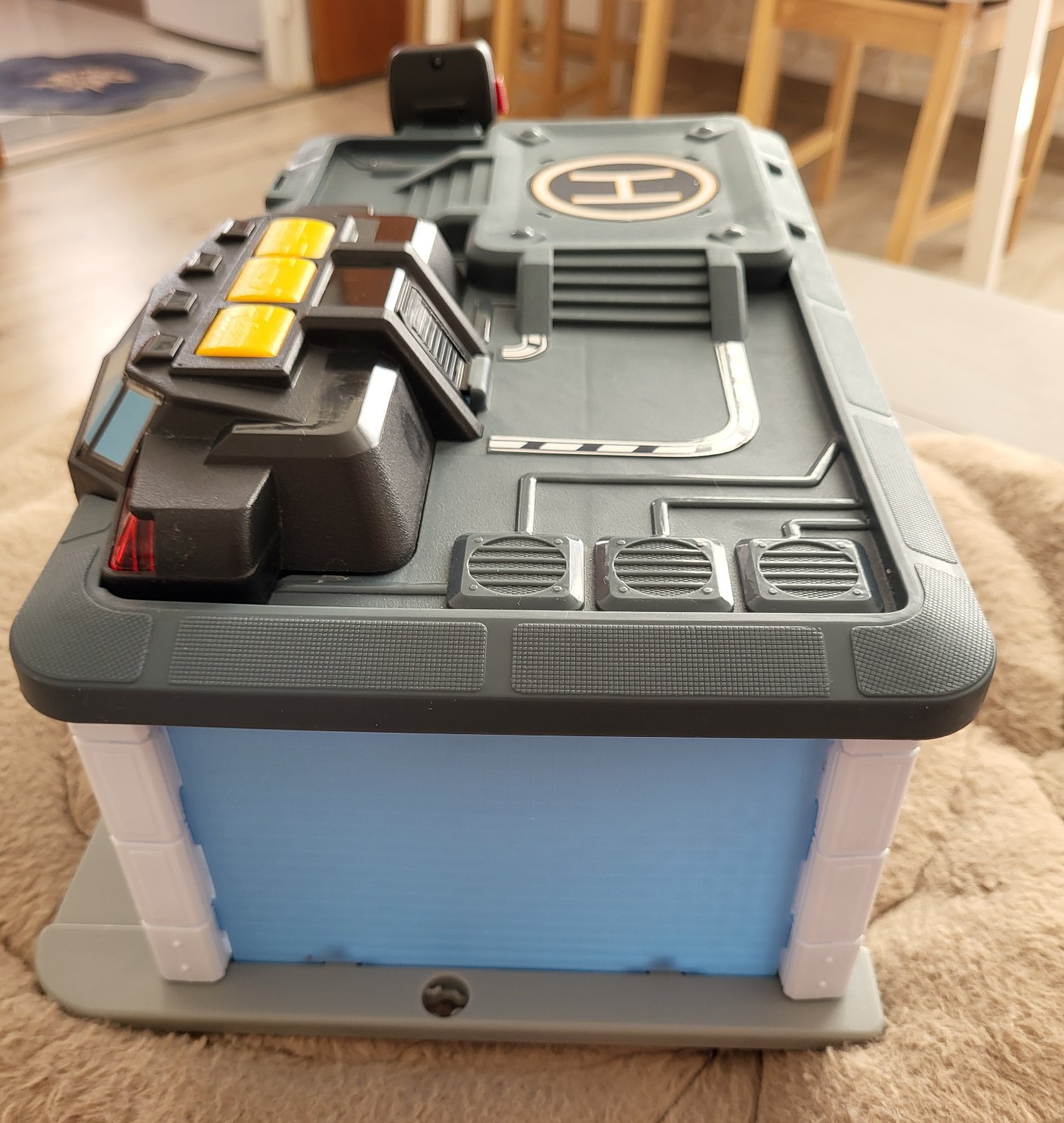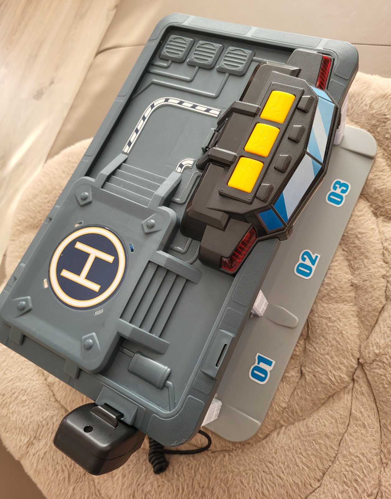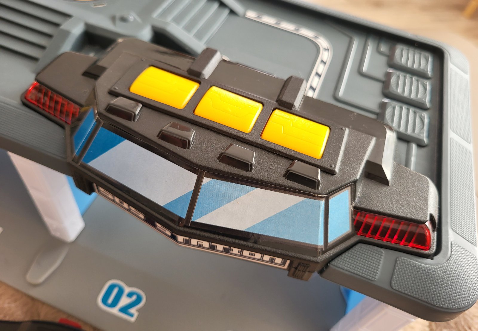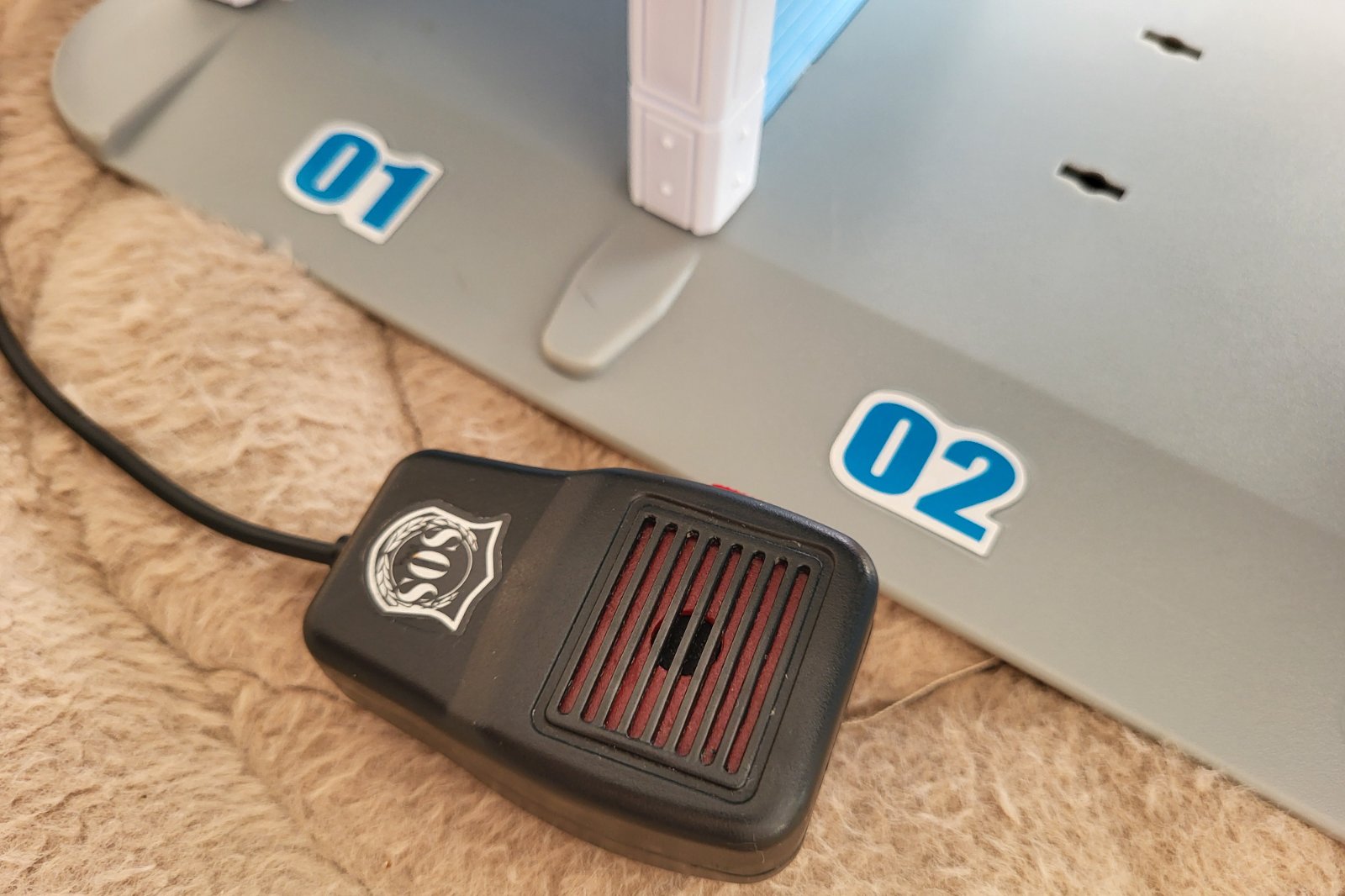 Funkčná vysielačka: Na boku sa nachádza pripojený reproduktor/vysielačka, cez ktorú môžu deti zadávať „hlásenia“.