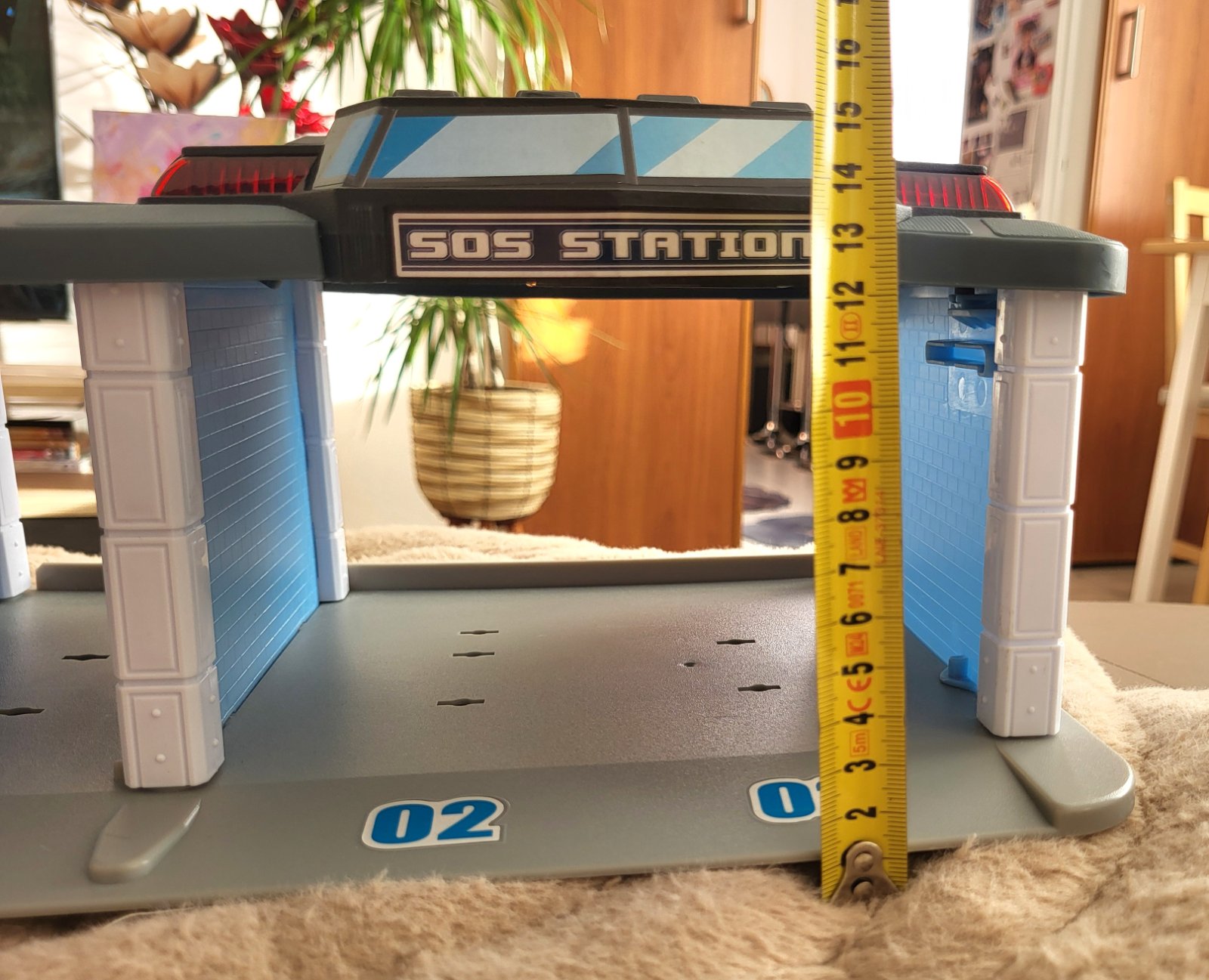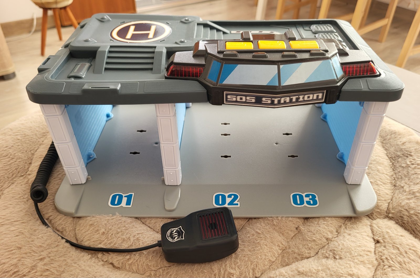 Priestor na vozidlá: Spodná časť slúži ako garáž s tromi označenými parkovacími miestami pre záchranárske autíčka.