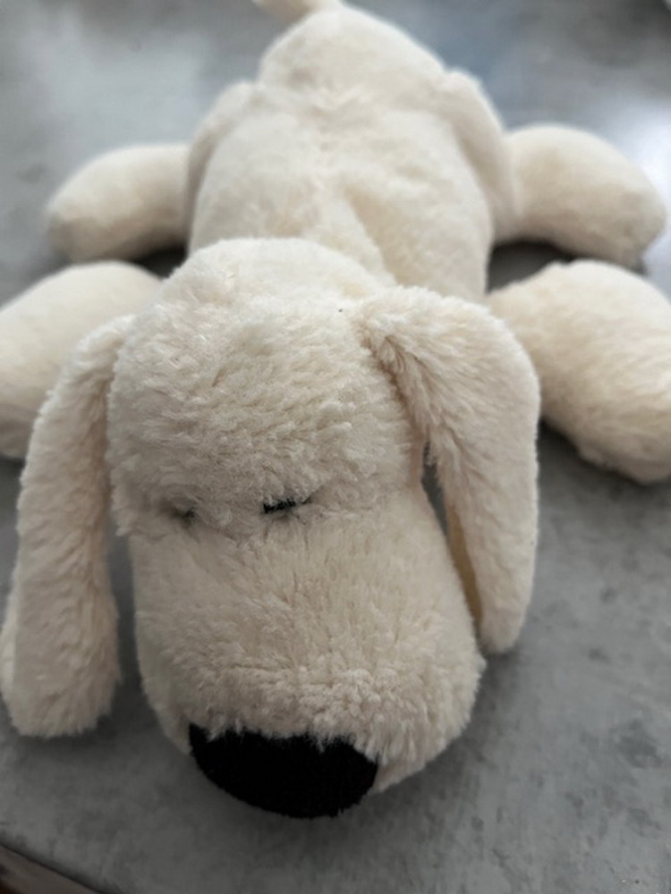 Plyšová hračka Psík v bielej farbe, je vyrobená z jemného plyšu, rozmer: výška - 18 cm, šírka - 25 cm