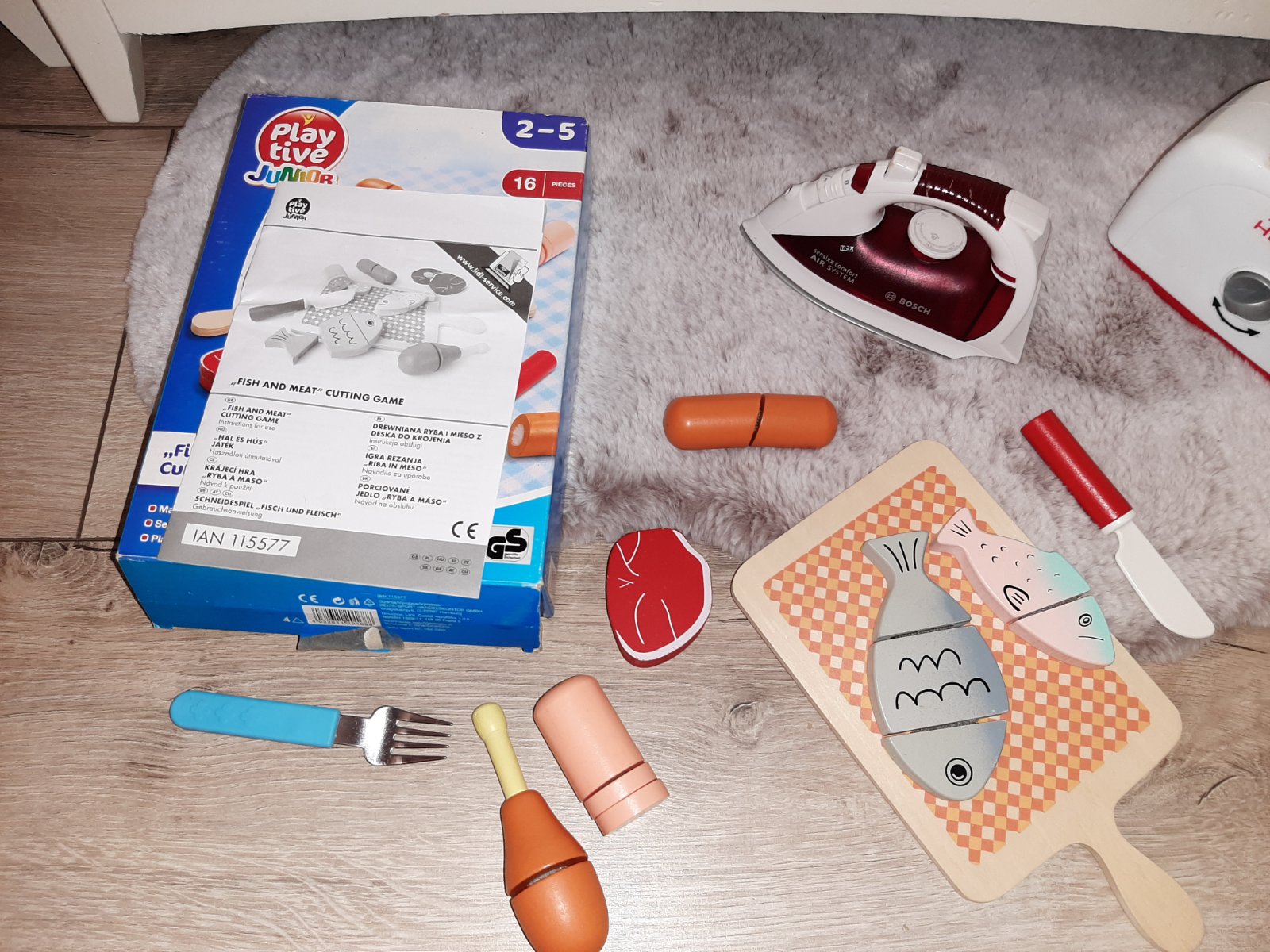 16 kusová drevená sada, näsko a ryby...