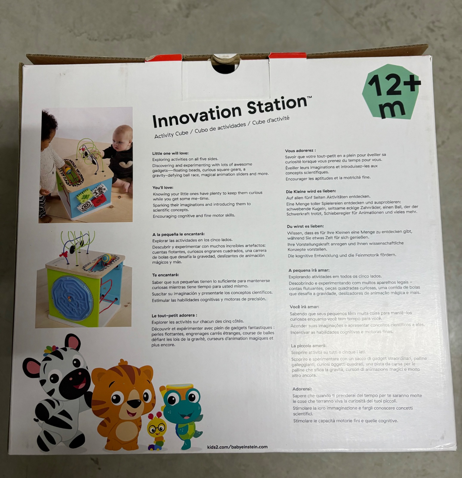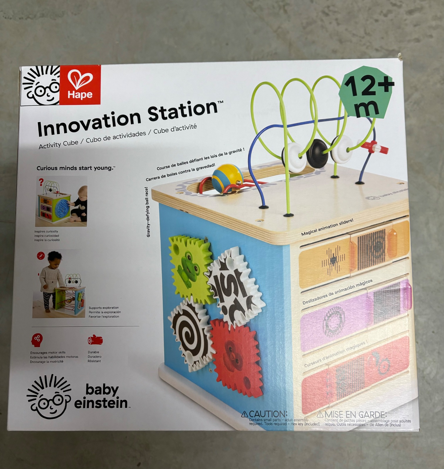 Na vášho malého vedca čaká päť strán zábavy. Sledujte, ako je dieťatko očarené rôznymi vecami, ktoré môže chytiť, točiť, krútiť a aktivovať. Pomôcky ako plávajúce korálky a kuriózne hranaté ozubené kolieska prinútia vaše dieťa, aby sa vracalo k hre s touto vývojovou hračkou. Nie je to len tak hocijaká stará kocka na aktivity, Hape a Baby Einstein sa spojili, aby do drevenej inovačnej stanice pridali žiarivé farby a magické prvky. Vstúpte do sveta plného vzrušujúcich vedeckých konceptov, s ktorými sa môže hrať viacero detí naraz. Budú zvedaví a dychtiví zistiť, čo sa stane, keď stlačia a potiahnu posúvače animácie alebo otočia ozubené kolieska s tučným vzorom. Vďaka guľôčkovým pretekom, ktoré odolávajú gravitácii a mnohým ďalším, objav nikdy nekončí s touto hračkou pre batoľatá!