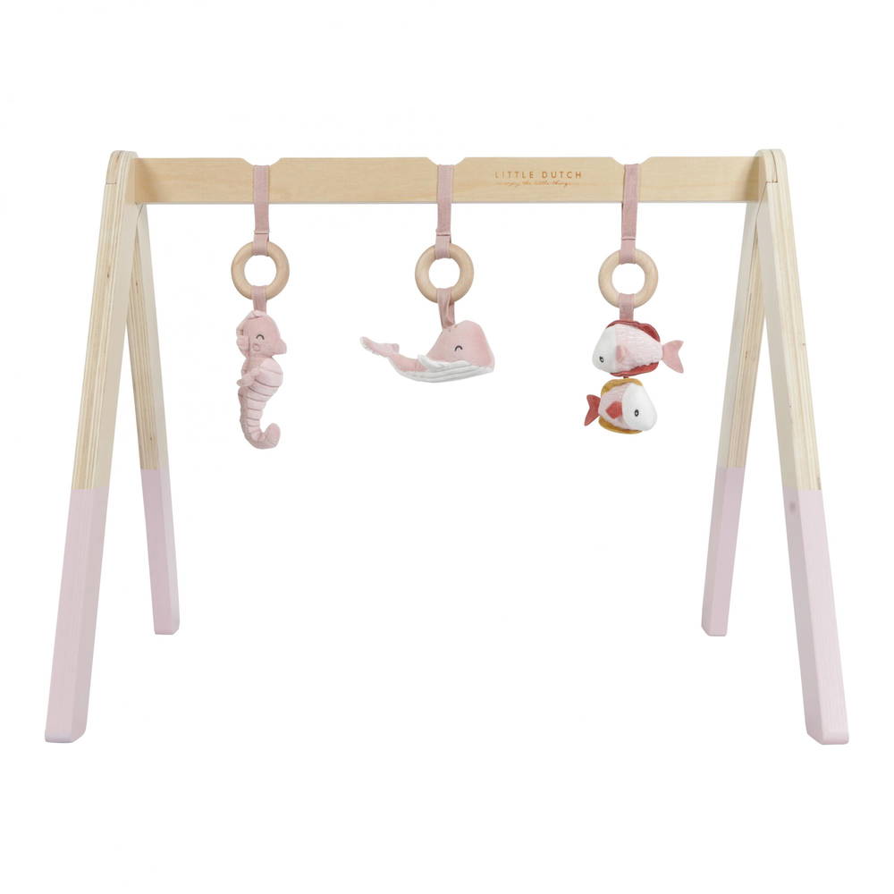 Štýlová drevená hrazdička s tromi zavesenými plyšovými hračkami v podobe srnky, jahôdky a kvetiny poskytne vášmu bábätku veľa zábavy pri hraní na deke. Jednotlivé hračky lákajú dieťa na skúmanie a ...