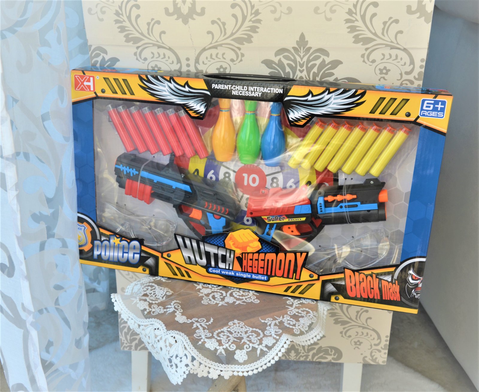 nové neotvorené balenie,s 2 pištolami a nábojmi+kolky-rozmer balenia 48x28cm...kuk aj na iné moje inzeráty