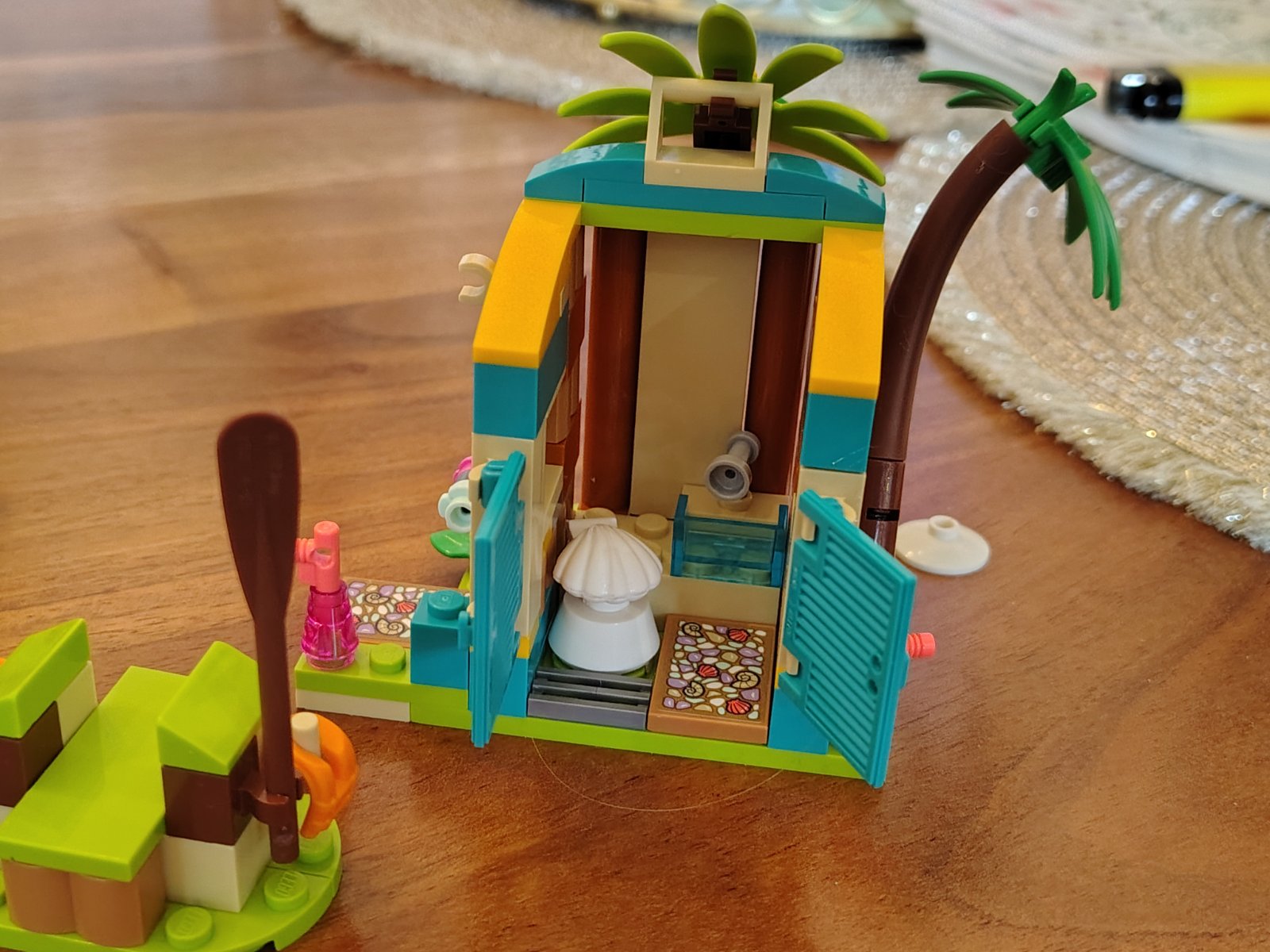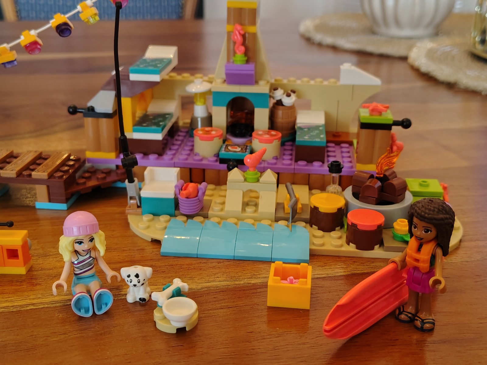 Na motívy luxusného kempovania obsahuje 2 paddleboardy pre postavy LEGO Friends, na ktorých môžu preskúmavať pobrežie a okolitú prírodu so šteniatkom Pebble. Na súši môžu hľadať mušle a stavať hrady z piesku a potom sa osviežiť vo vonkajšej sprche a na toalete. K dispozícii je mólo pre rybárčenie. Svoj úlovok si potom môžu uvariť na variči v stane, okolo ktorého sa nachádzajú pohodlné miesta na sedenie a poschodové postele.