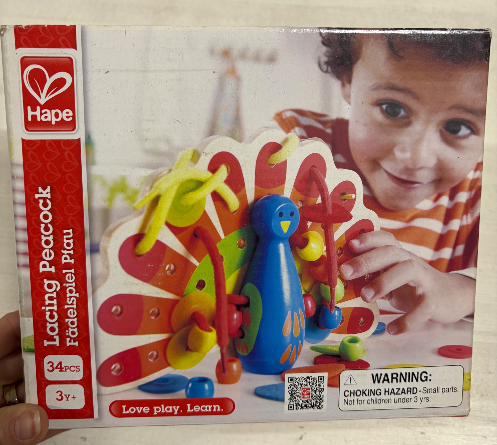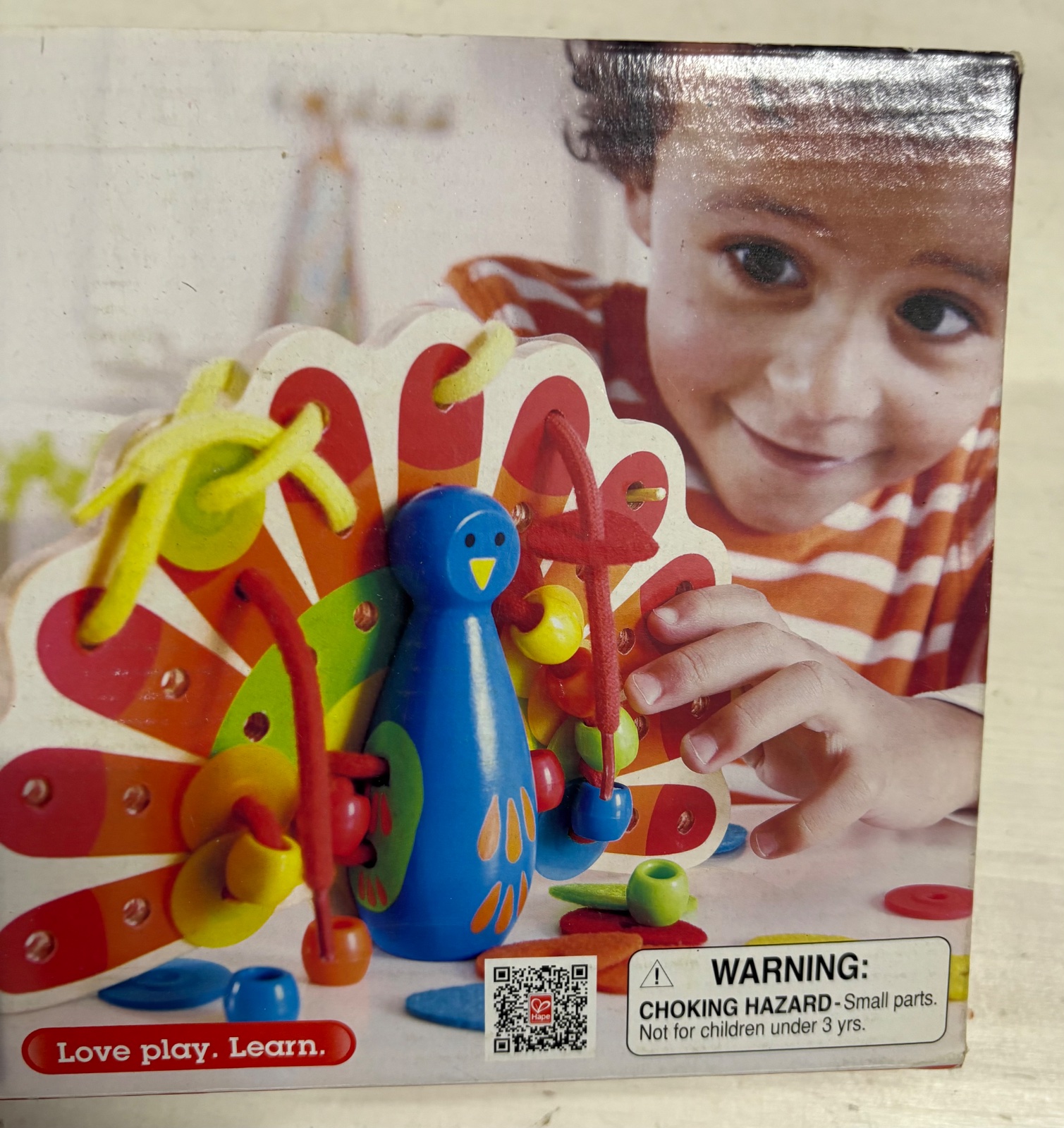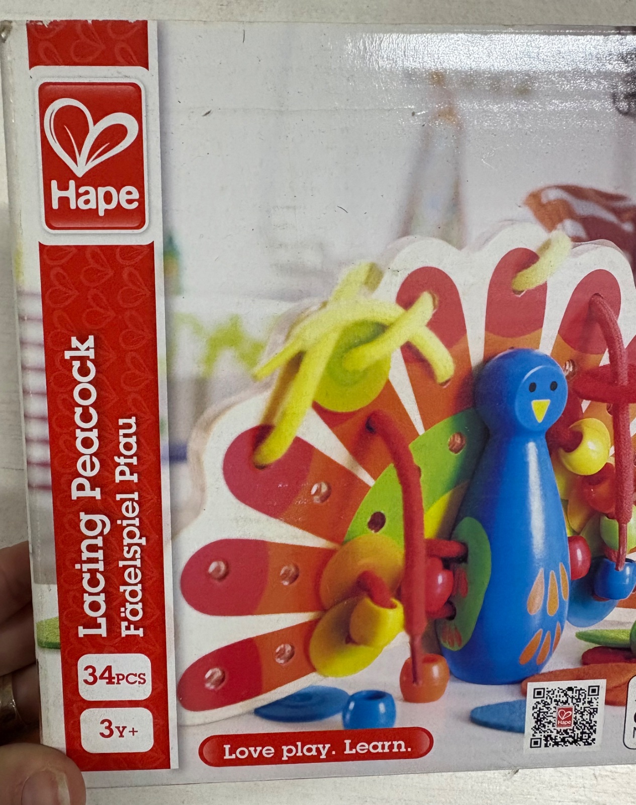 Hape - dreveny pav na prevliekanie a šnurovanie