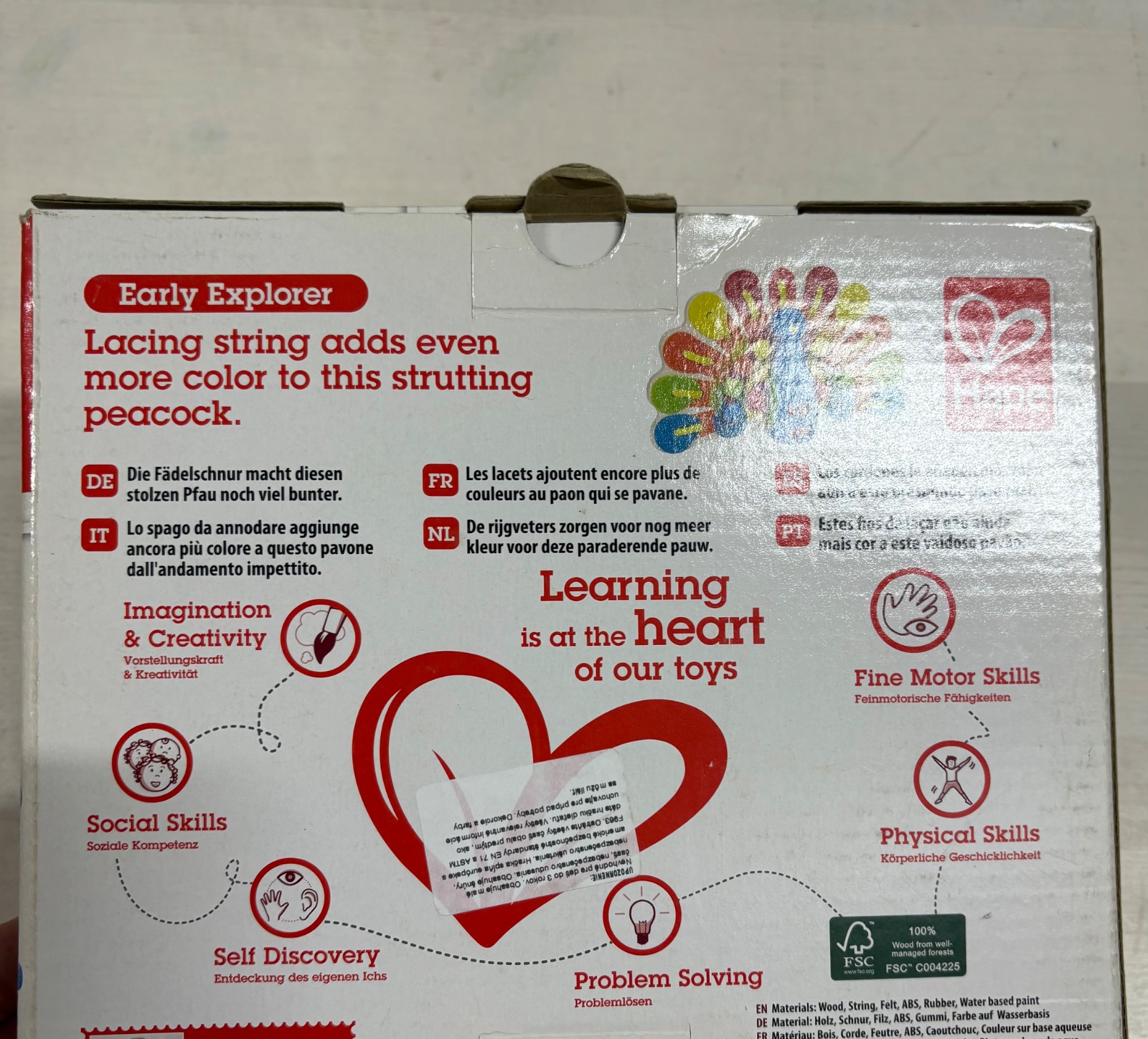 Každá drevená hračka Hape je vyrobená kombináciou vysoko kvalitných materiálov, unikátneho designu, nápadov v oblasti vzdelávania detí a ekologického prístupu k životu. V Hape sú pevne presvedčení, že dobré drevené hračky musia spĺňať všetky tieto body. A v soúlade s touto ideou sa snažia neustále zdokonaľovať svoje výrobky a stanovovať si nové a nové ciele. Výsledkom je, že sa Hape behom posledných dvoch desaťročí etablovalo ako jeden z najobľubenejších a najúspešnejších výrobcov drevených hračiek tejto doby. Drevené hračky spĺňajú všetky medzinárodné bezpečnostné štandardy. Výrobca drevených hračiek Hape plne rozumie dopadom na životné prostredie a ich cieľom je ponúknuť deťom bezpečný a čistý svet. Výrobky Hape spĺňajú bezpečnostné a akostné normy EN71 (europská norma hračiek) a ASTM (Americká spoločnost testovánia materiálov) zemí, pre ktoré sú určené. Ďalej sú taktiež v súlade s príslušnými právami a predpismi kvality vrátane mechanických, fyzikálnych a chemických požiadaviek.