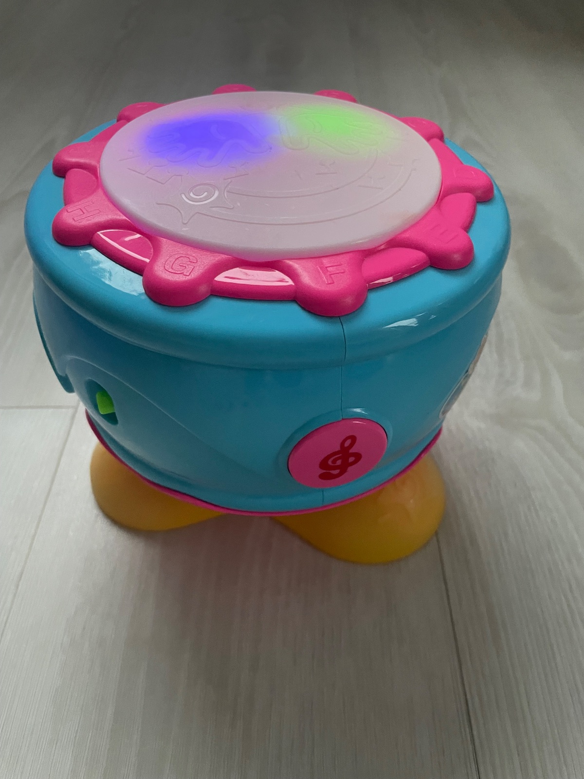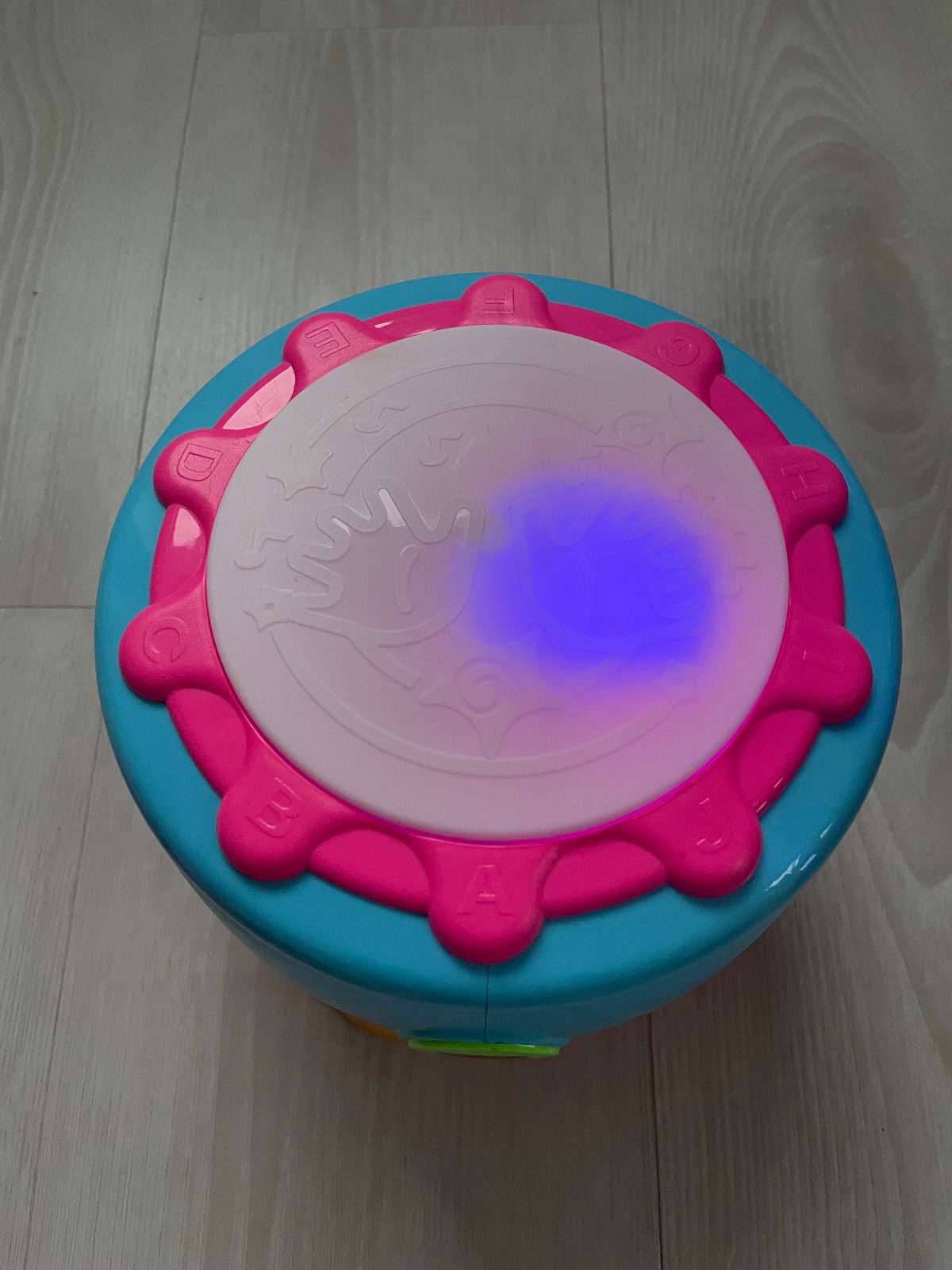 Hrajúci interaktívny bubon,mení rytmus melódiu podľa buchania dieťatka a otáčania bubna,bliká pri dotyku, plne funkčný a vo veľmi dobrom stave