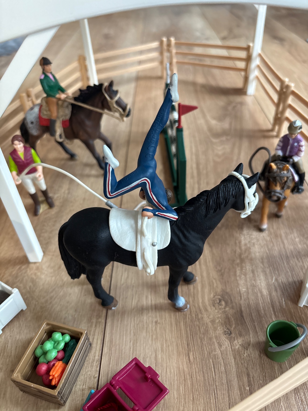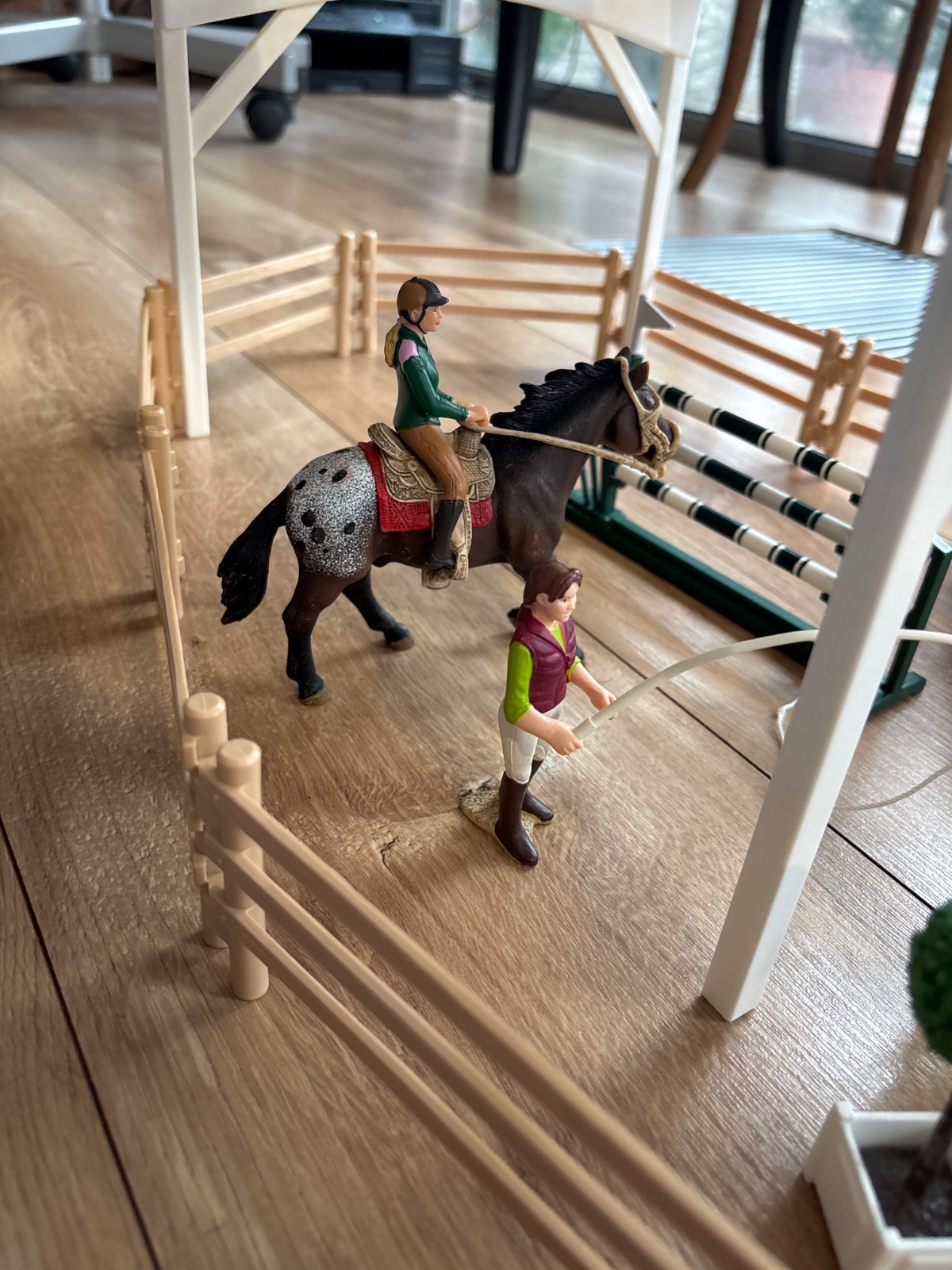 Schleich sada jazdecká skola s koňmi a prekážkami. Otvárateľné okna. Plne funkčná s dielmi. Pôvodná cena 71€. Možnosť i dovezená, pokial budem mat cestu.