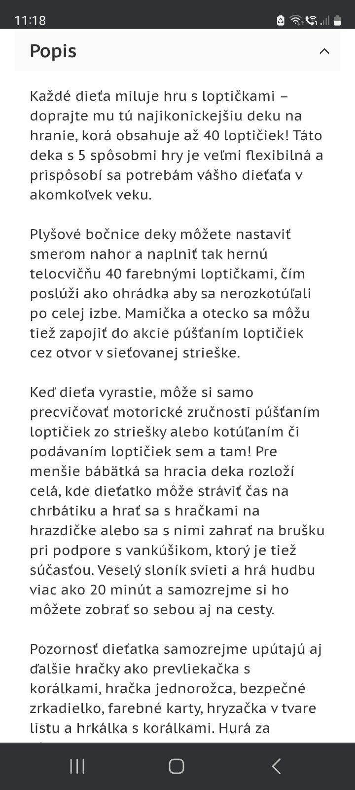 detska hracia deka Tinylove, osobny odber PK a okolie
