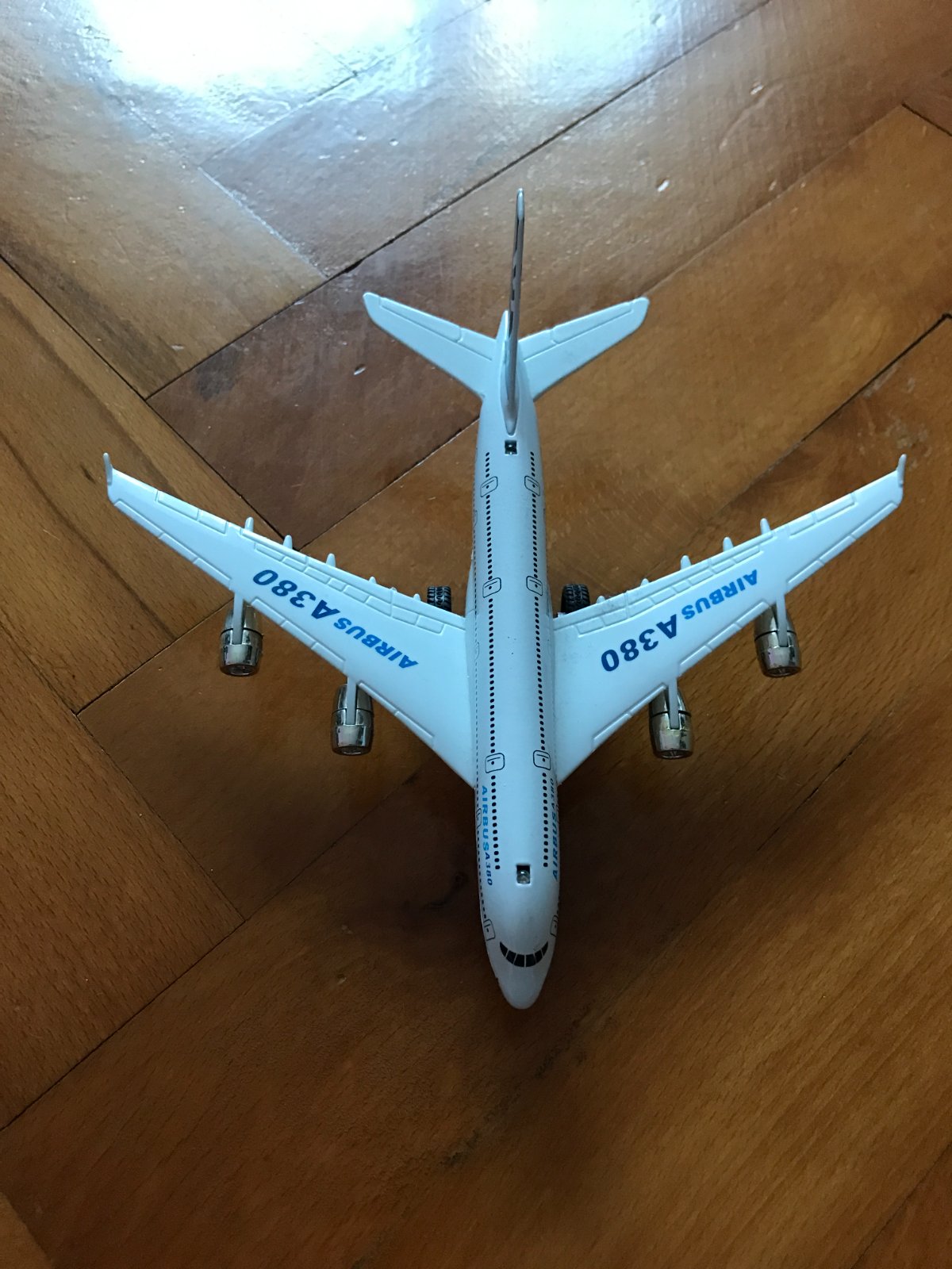plastový model ikonického lietadla Airbus A380