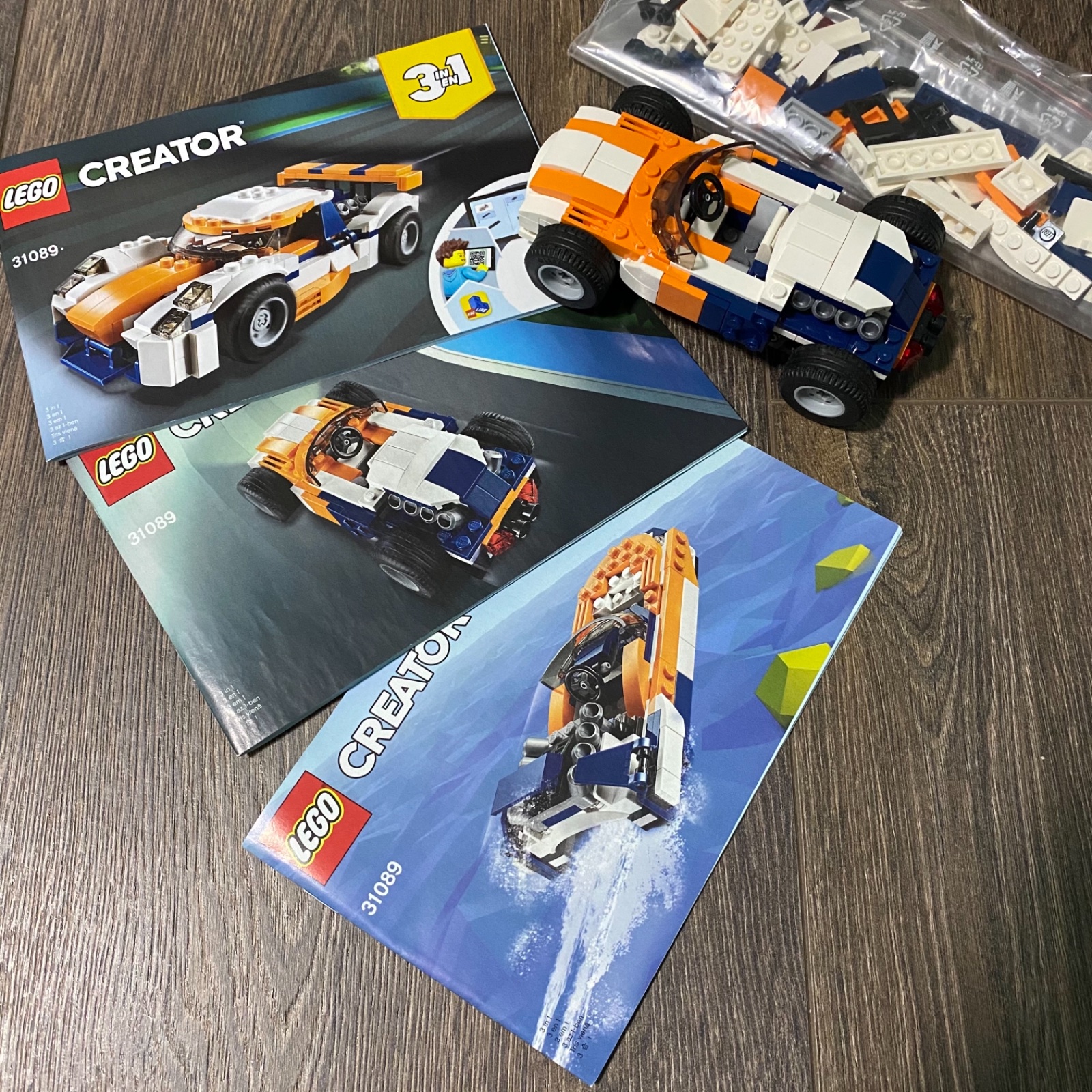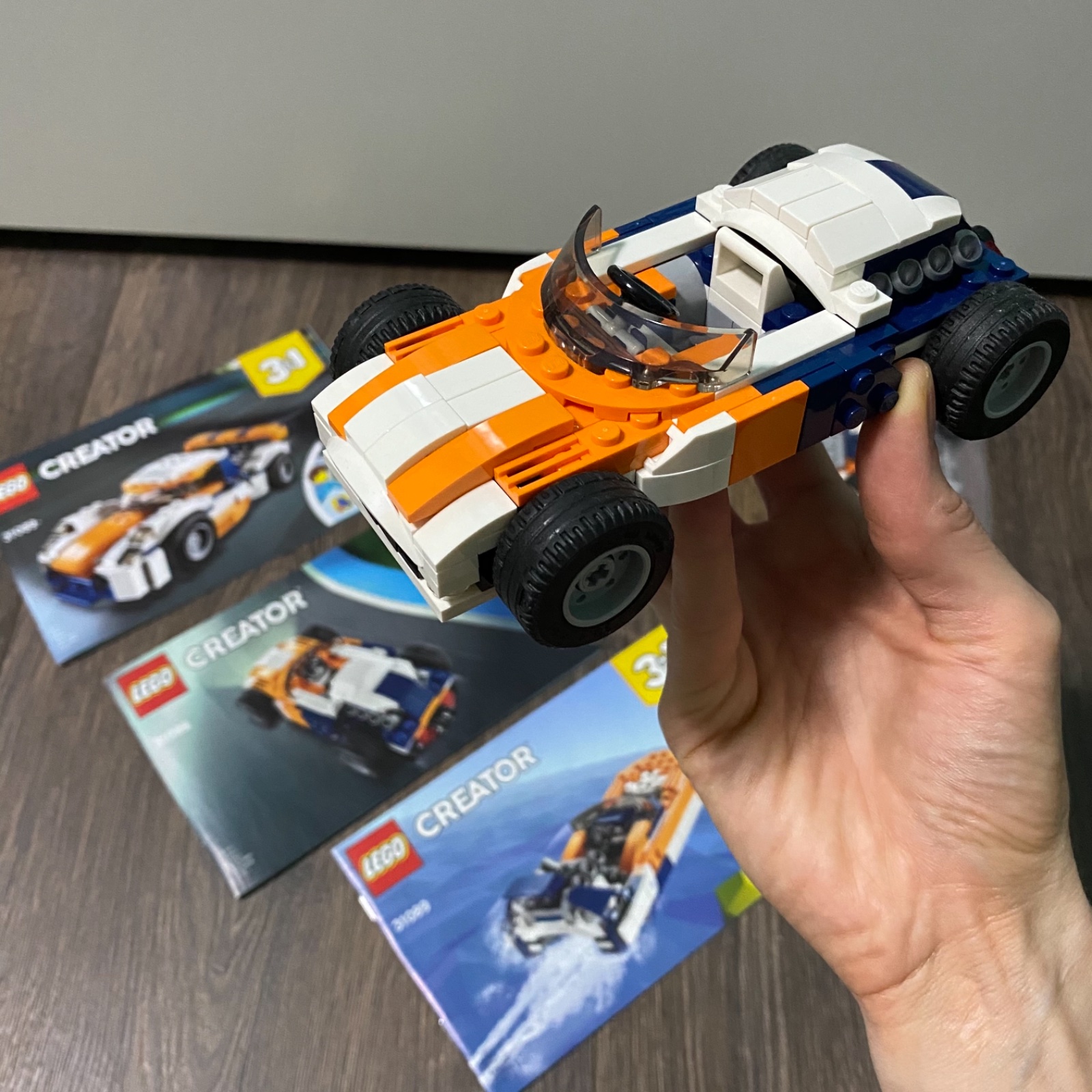 Predám LEGO Creator 3v1: pretekárske auto, historické pretekárske auto a čln. Len poskladané a vystavené v detskej izbe. Aj s pôvodnou krabicou.