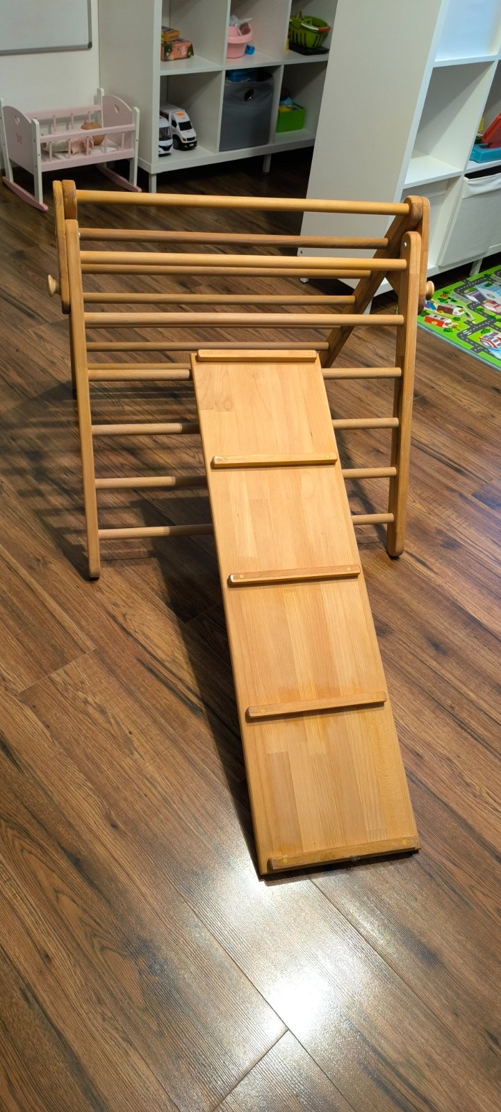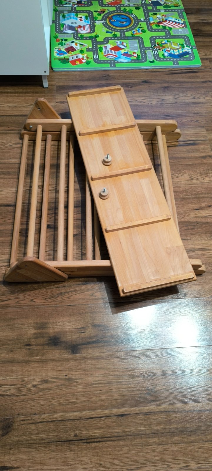 Používaný, no v bezchybnom stave. Nepospísaný, neošúchaný triangel s doskou. Doska má na jednej strane hladkú časť a z druhej strany stupienky.