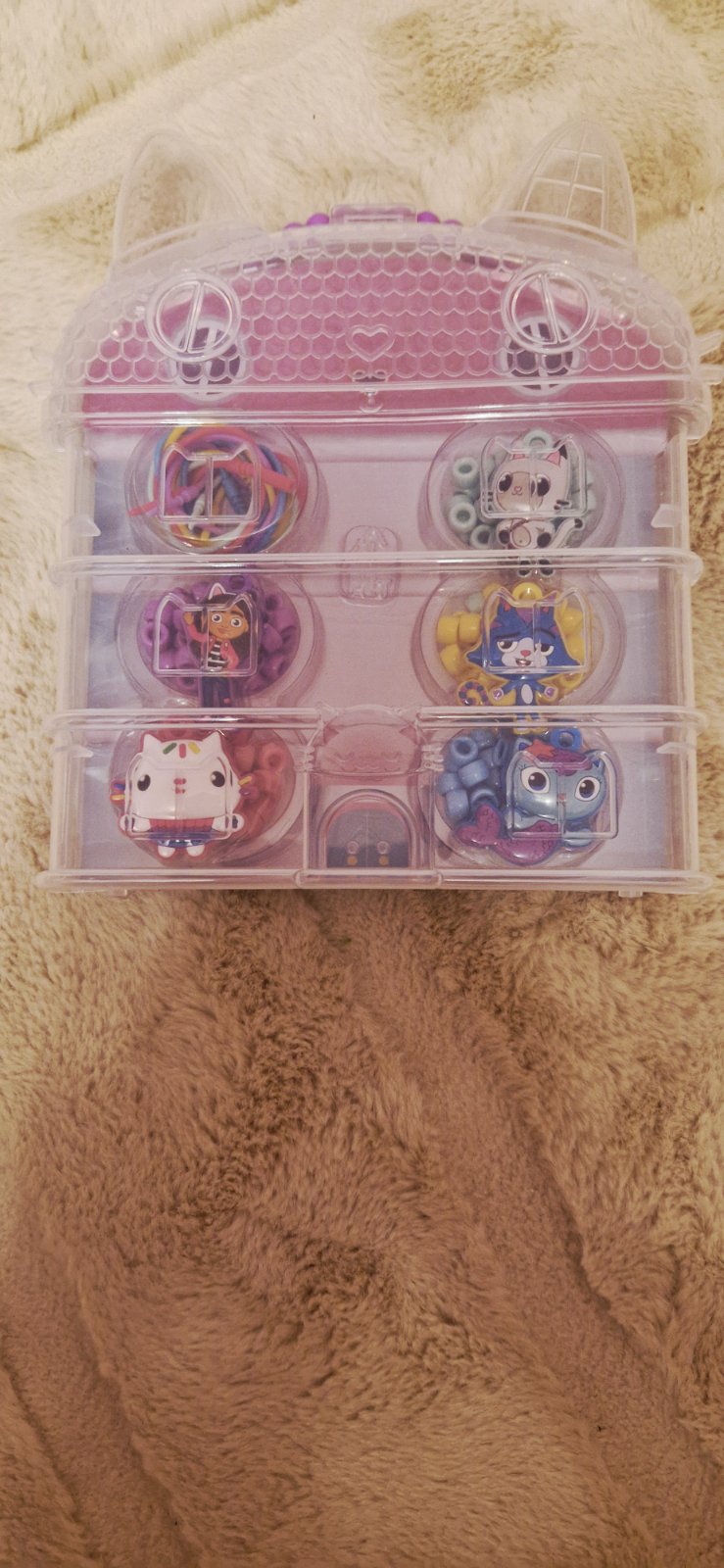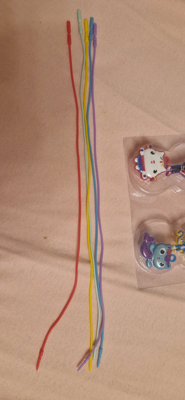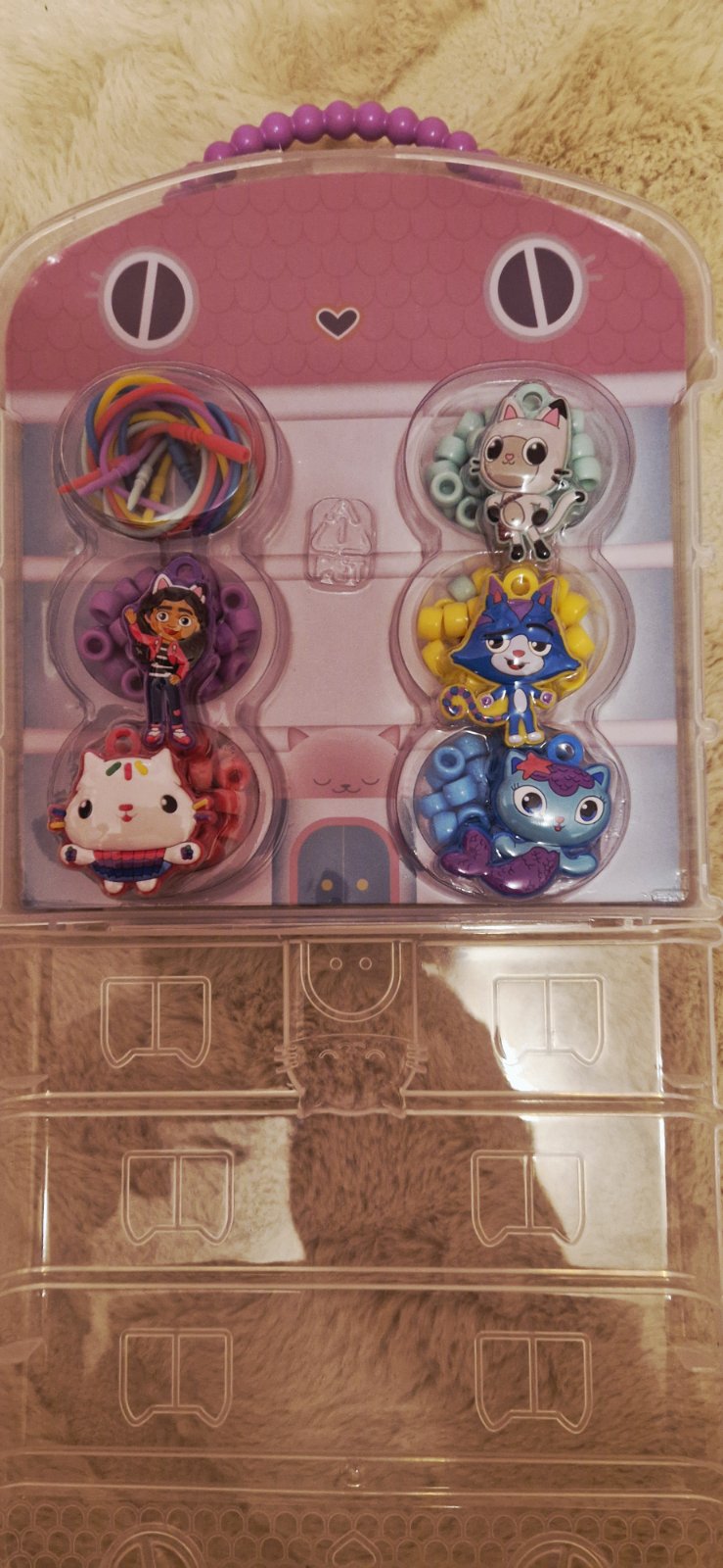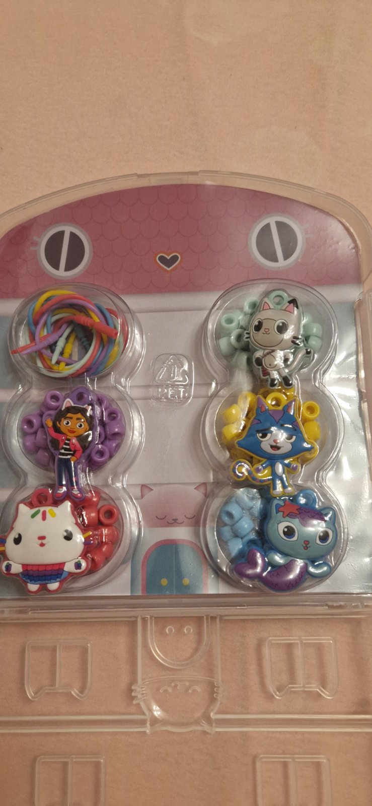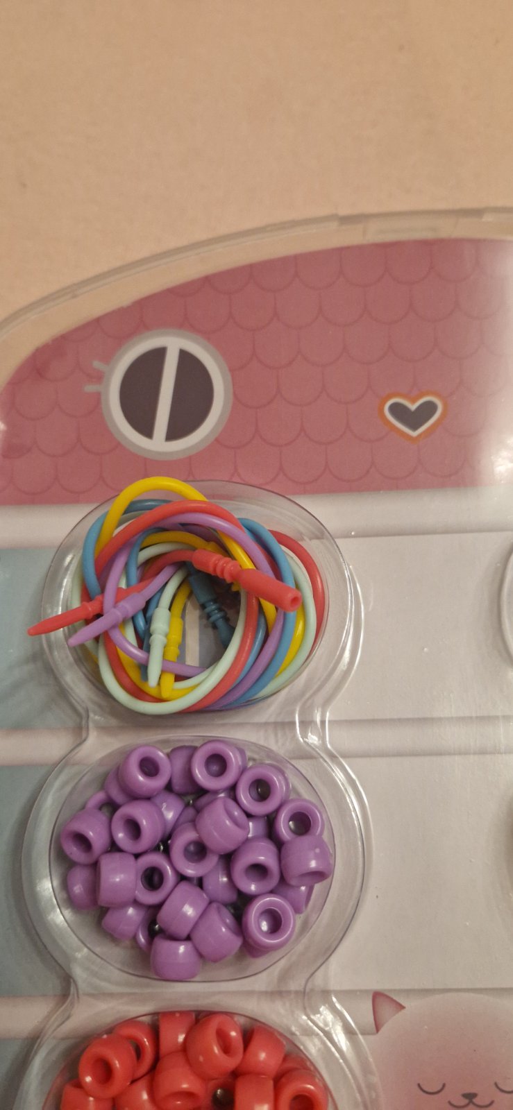 Úplne nové, nepoužívané. Iba otvorené. Sada na výrobu náhrdelníkov v krásnom balení v tvare domčeka. 5x plastových šnúrok ktoré sa dajú opätovne používať. Koráliky majú dostatočné veľké dierky, takže aj malé pršteky to hravo zvládnu. 5x veselý prívesok.