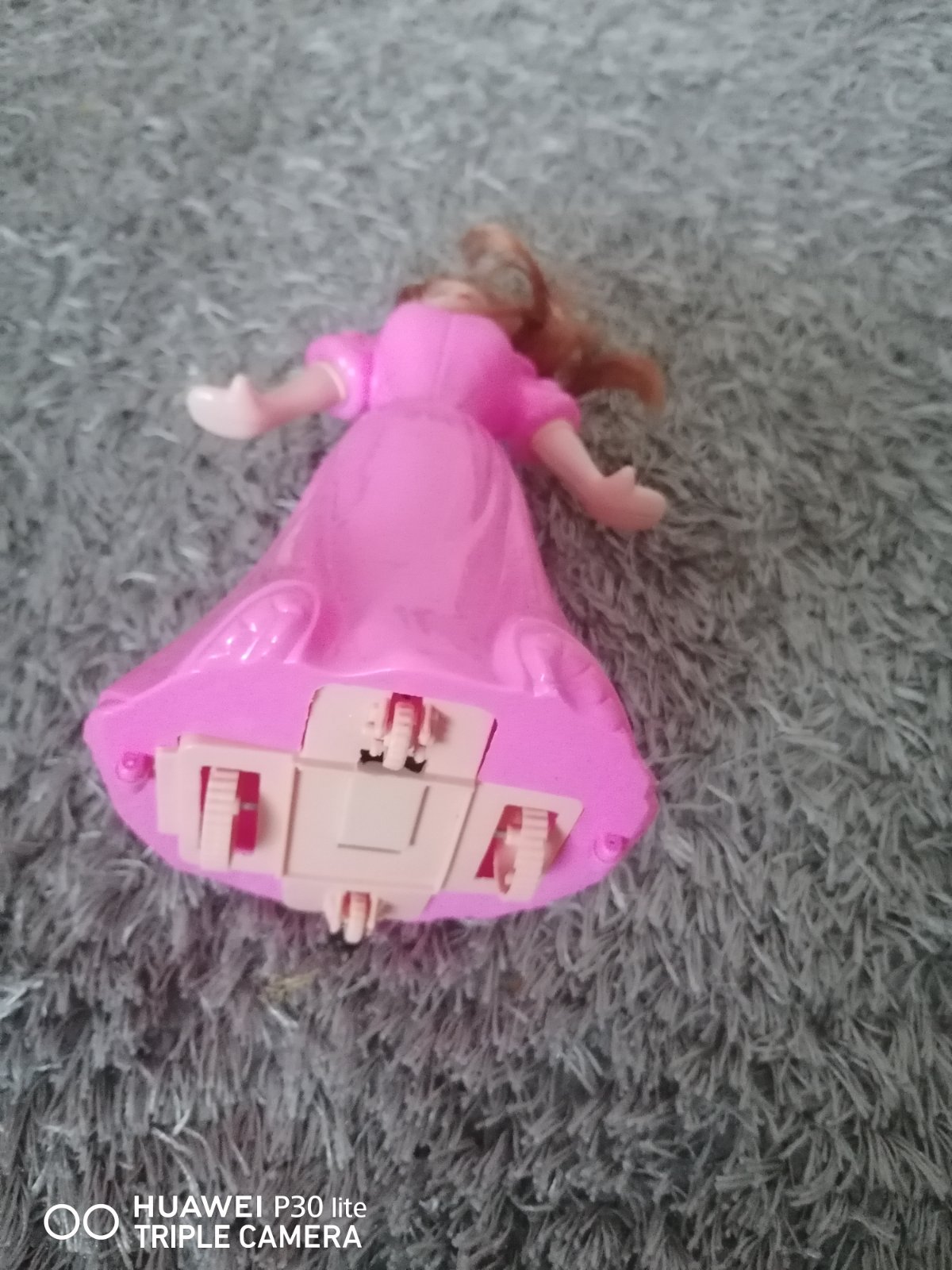 Bez poškodenia, plastova bábika na kolieskach, vzadu šnúrka, keď sa potiahne, bábika sa posúva do predu