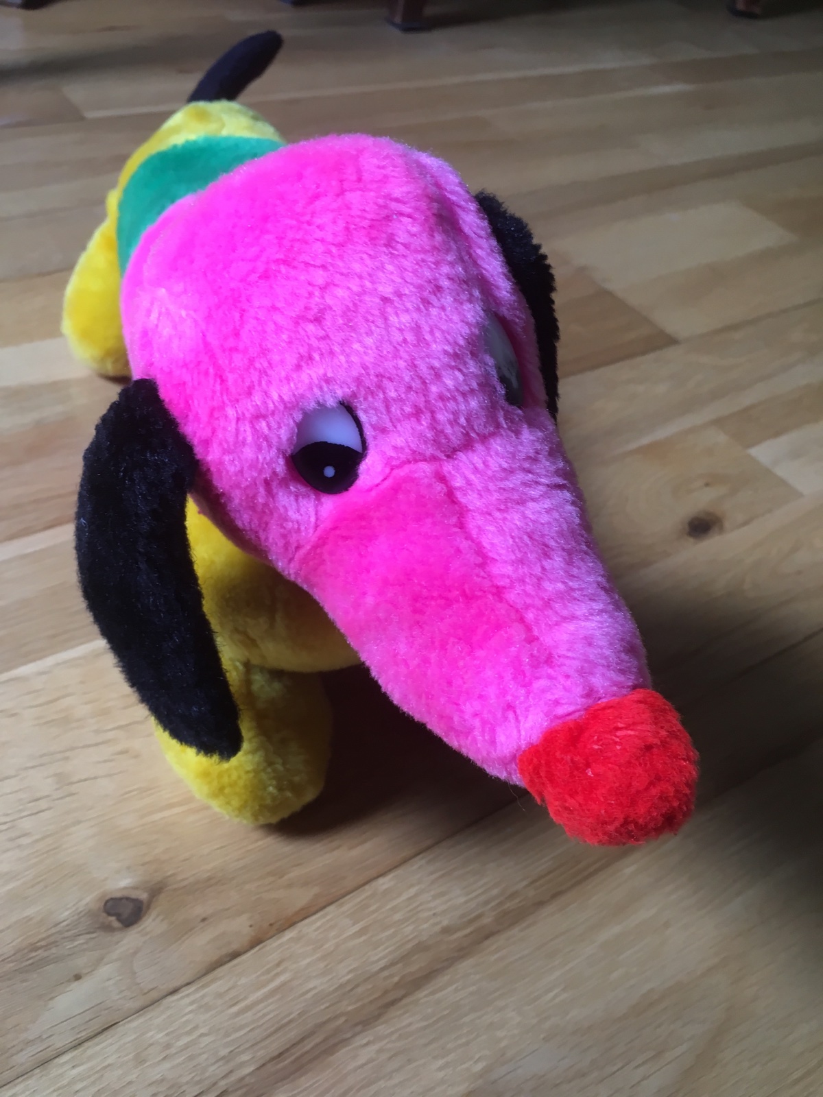Pedam krasneho velkeho, gumeneho dinosaura o rozmere cca vyska 32cm a dlzka 45cm. Pre milovnikov dinosaurov je jedinecny, kupovany v zahranici :-)