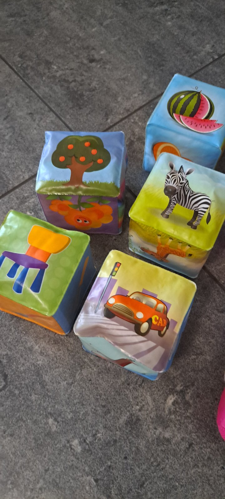 Hrané, nepoškodené, 2x bábika 30cm a 26cm a 5x kocka penová
