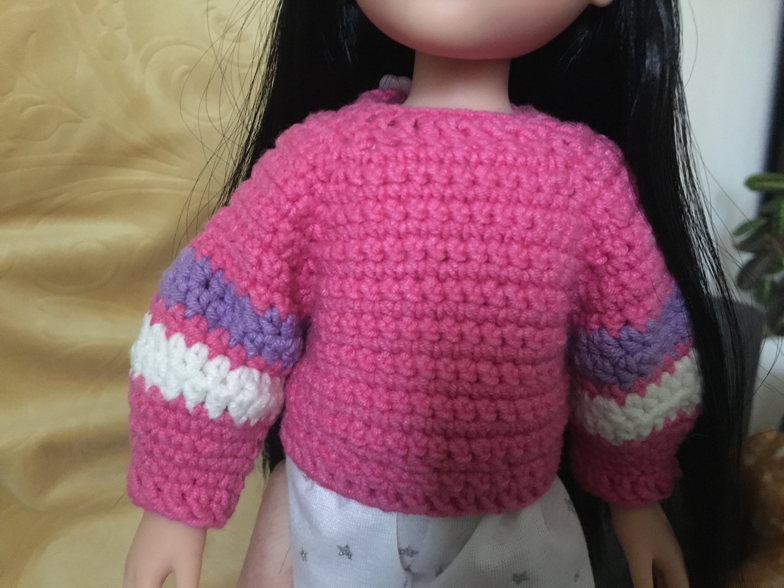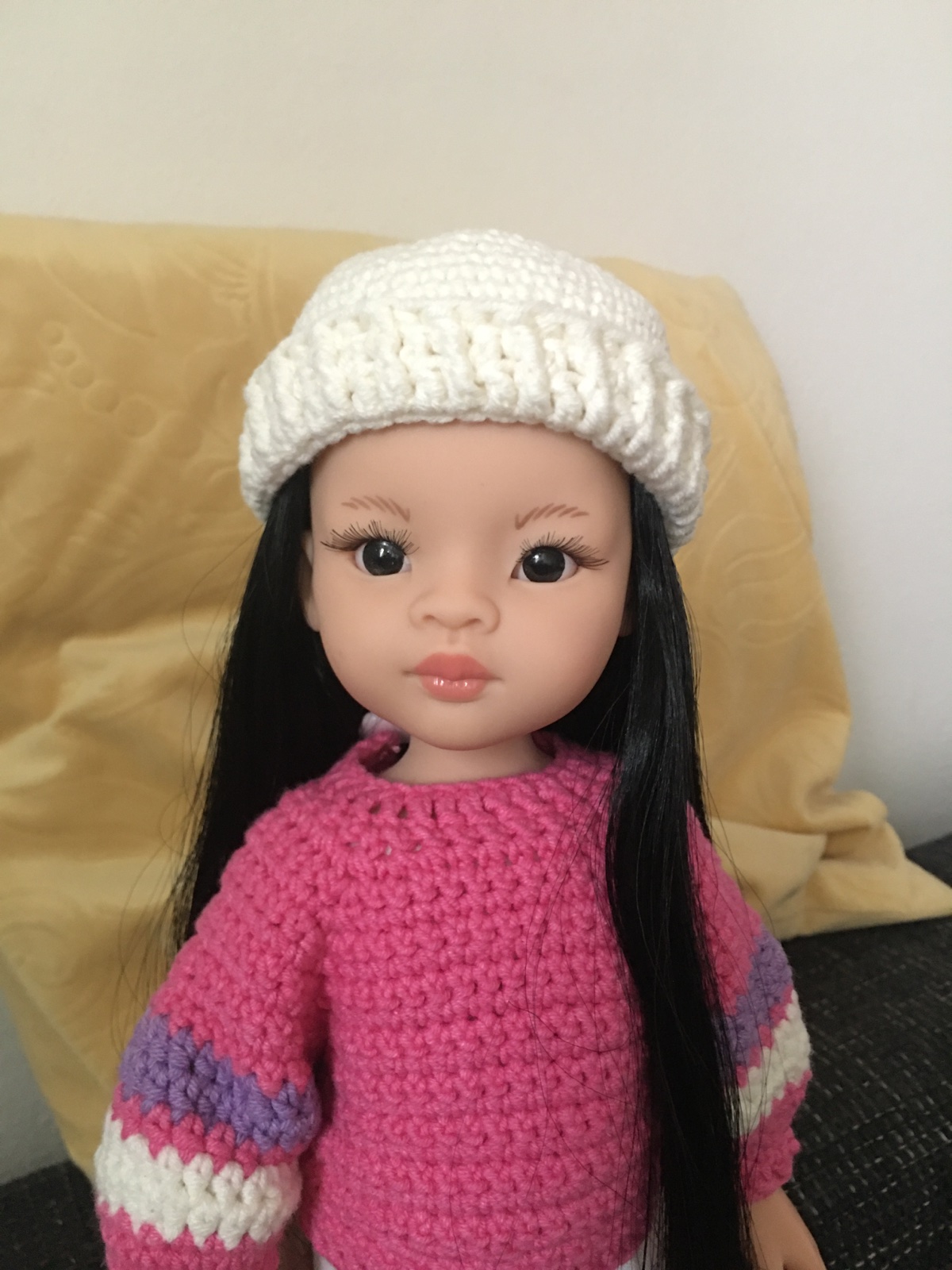 Štýlová háčkovaná čiapka pre bábiku 32cm. Farebne vhodná aj k svetríkom ktoré sú na predaj v mojich inzerátoch.