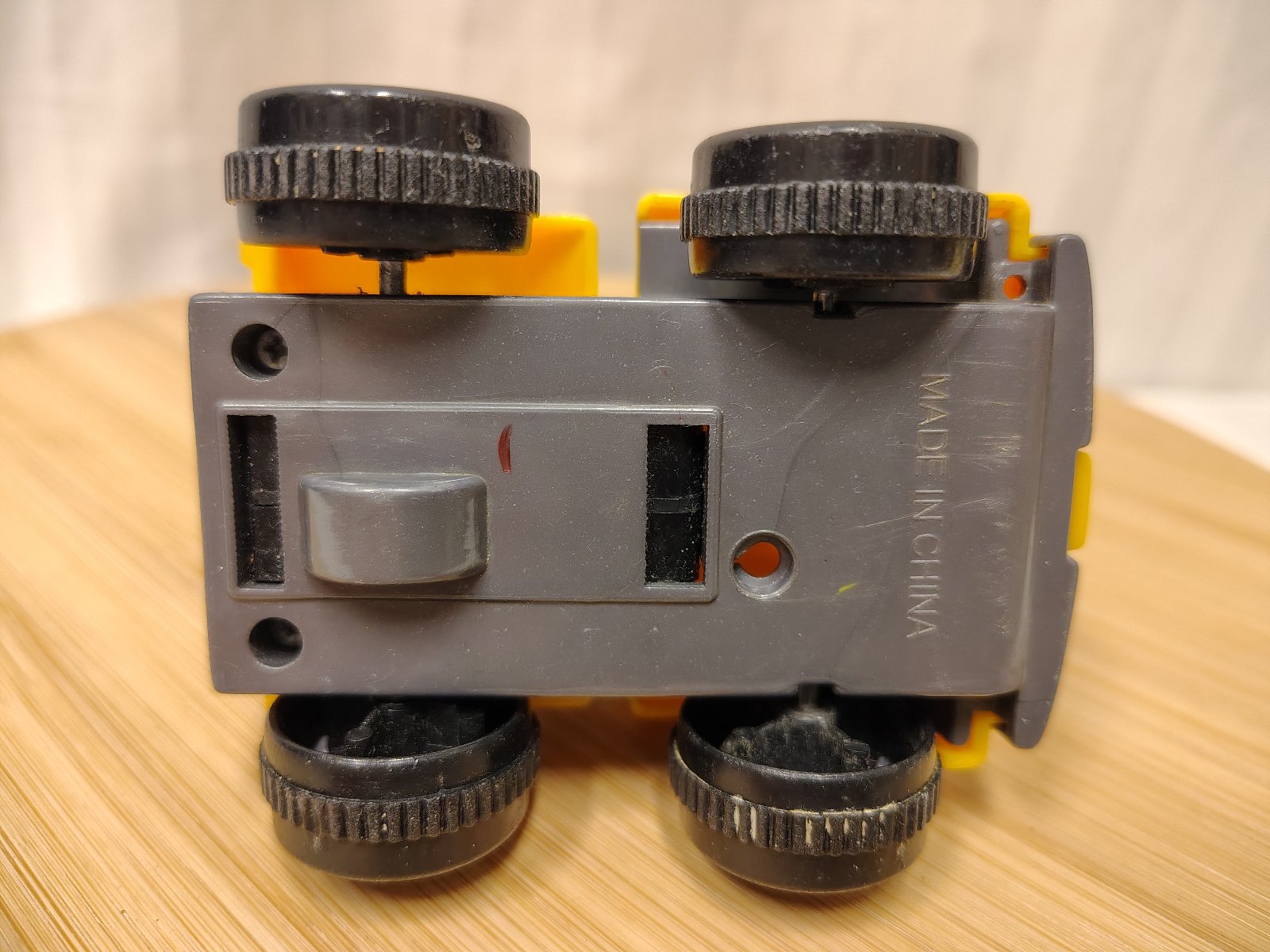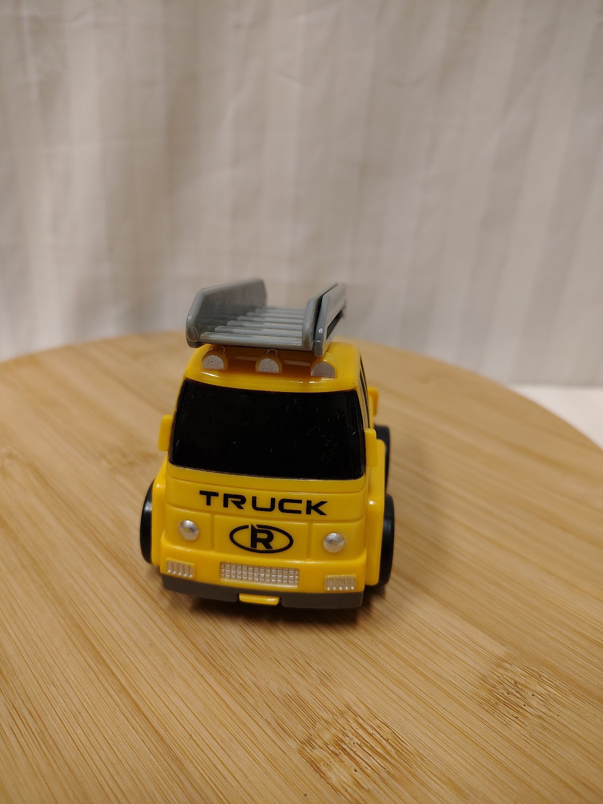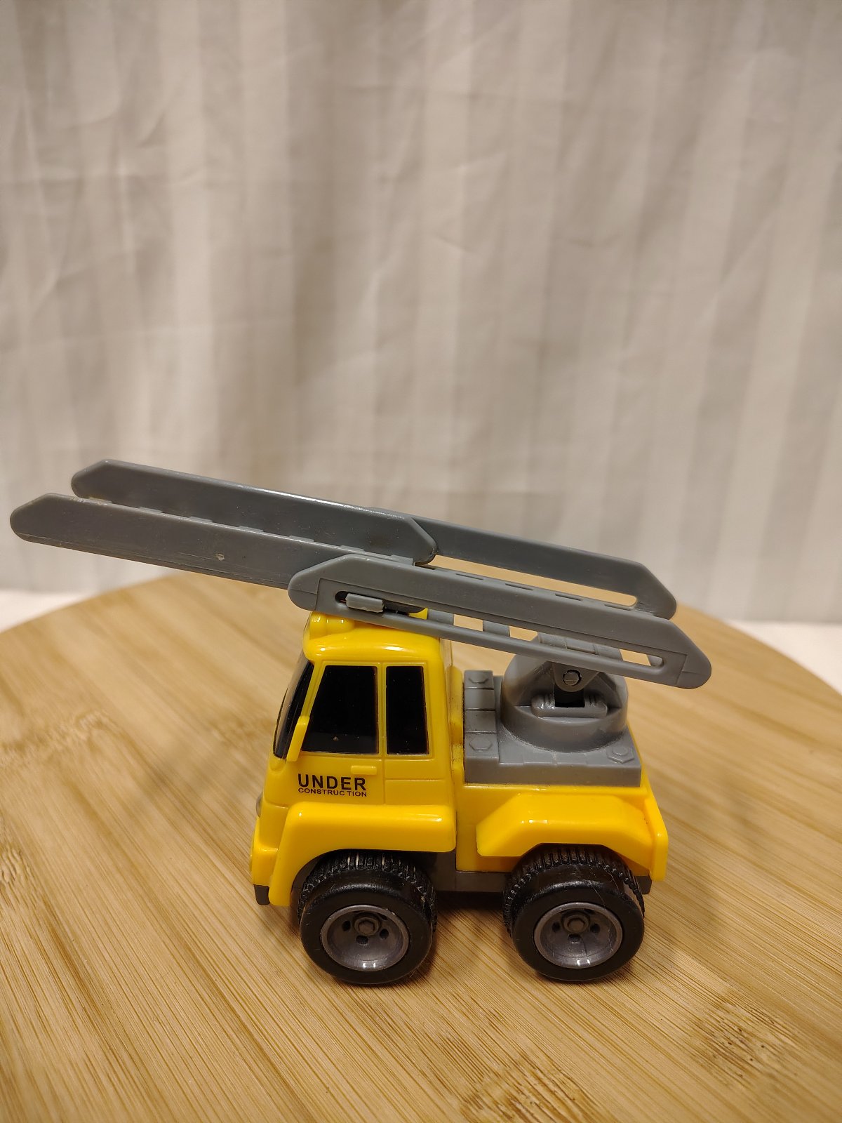 Žlté stavebné autíčko s rebríkom, ide o malé stavebné autíčko (pracovný stroj) so zvinovacím rebríkom, mechanizmus pull-back (po natiahnutí dozadu samo jazdí) nefunguje dobre, Vhodné pre deti od 3 rokov.