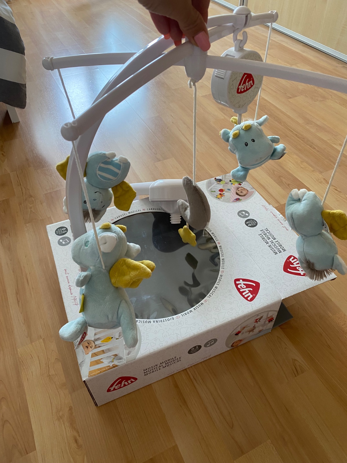 Značka Fisher price. Hrá upokojujúce melódie, bruško sa pohybuje hore dole, lampa svieti, hračka dýcha, bije mu srdiečko. Toto všetko sa dá zvlášť vypínať podľa potreby. Super pomôcka na zaspávani...